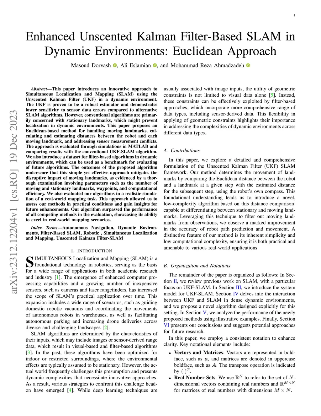 Enhanced Unscented Kalman Filter-Based SLAM in Dynamic Environments: