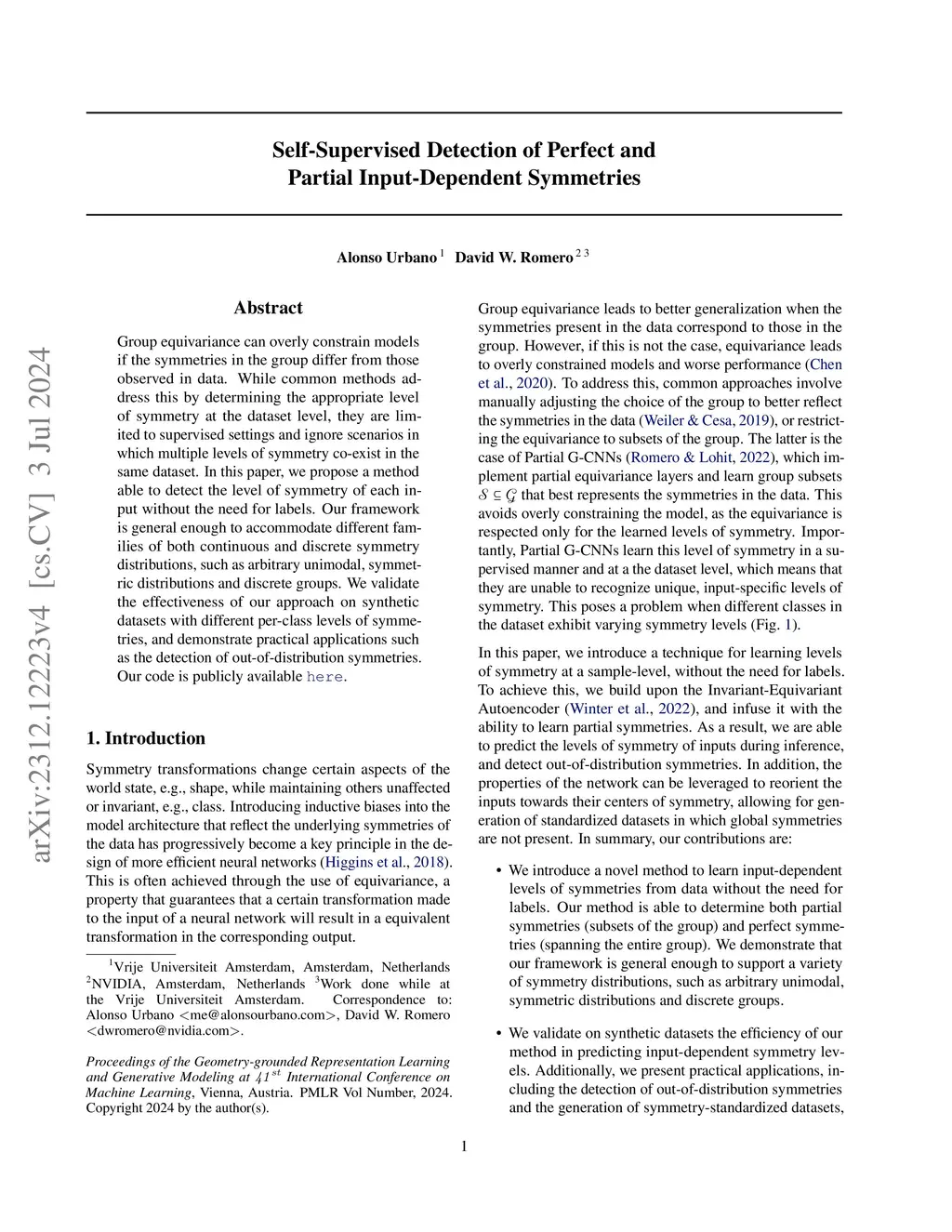 Self-Supervised Detection of Perfect and Partial Input-Dependent Symmetries