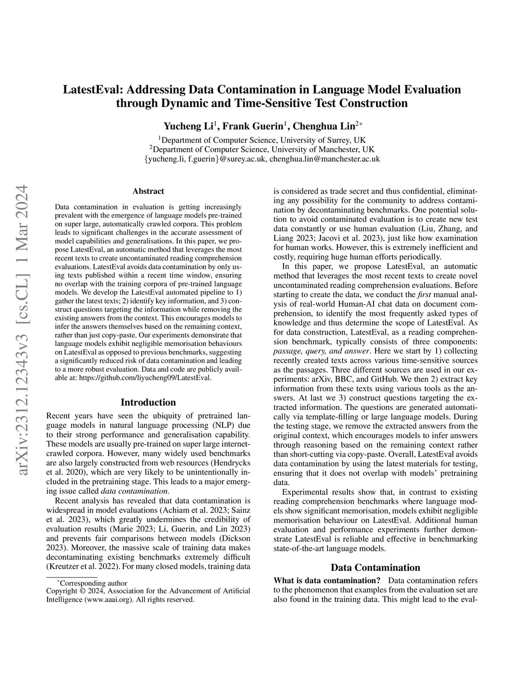 Data contamination in evaluation is getting increasingly prevalent with the emergence of language models pre-trained on super large, automatically crawled corpora. This problem leads to significant challenges in the accurate assessment of model capabilities and generalisations. In this paper, we propose LatestEval, an automatic method that leverages the most recent texts to create uncontaminated reading comprehension evaluations. LatestEval avoids data contamination by only using texts published within a recent time window, ensuring no overlap with the training corpora of pre-trained language models. We develop the LatestEval automated pipeline to 1) gather the latest texts; 2) identify key information, and 3) construct questions targeting the information while removing the existing answers from the context. This encourages models to infer the answers themselves based on the remaining context, rather than just copy-paste. Our experiments demonstrate that language models exhibit negligible memorisation behaviours on LatestEval as opposed to previous benchmarks, suggesting a significantly reduced risk of data contamination and leading to a more robust evaluation. Data and code are publicly available at: https://github.com/liyucheng09/LatestEval.
