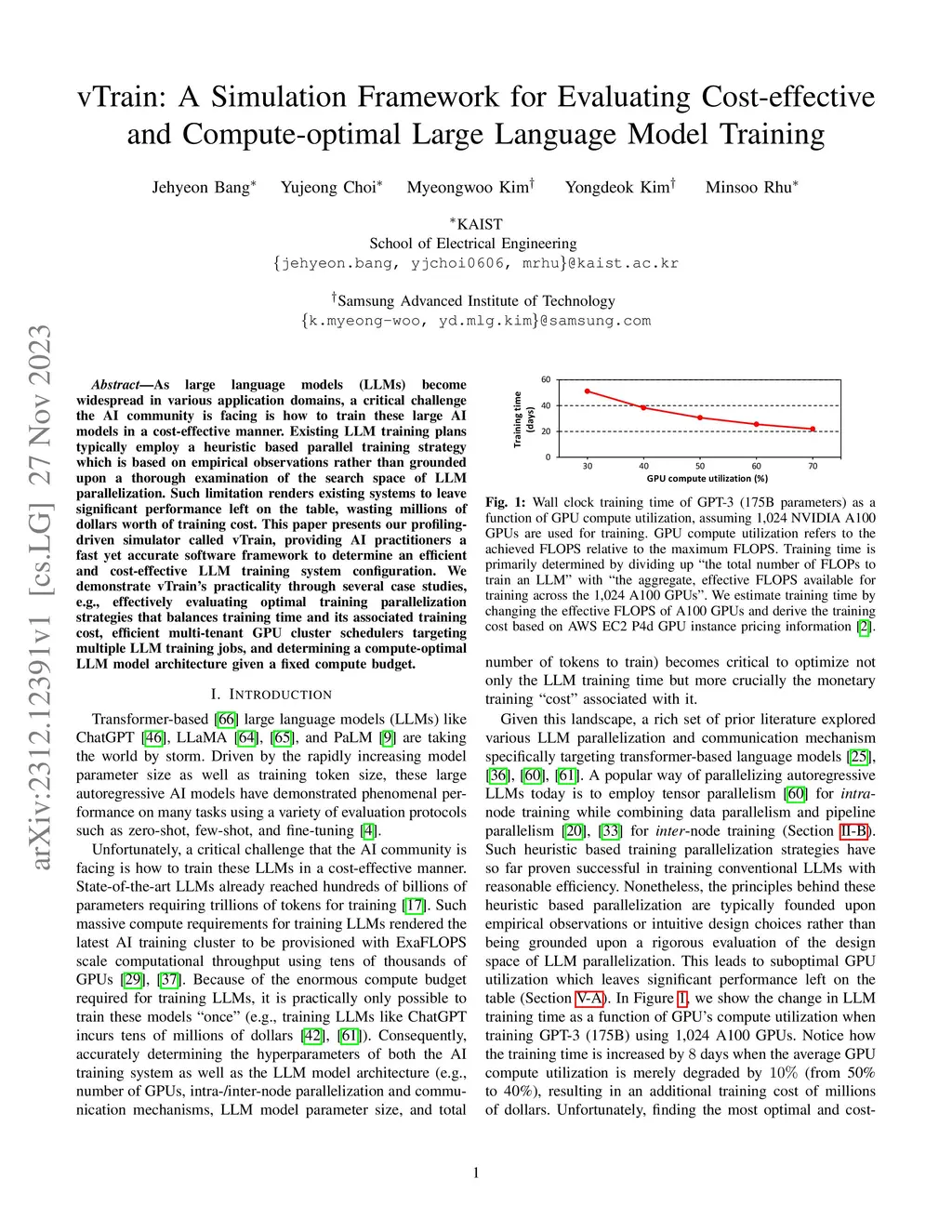 vTrain: A Simulation Framework for Evaluating Cost-effective and