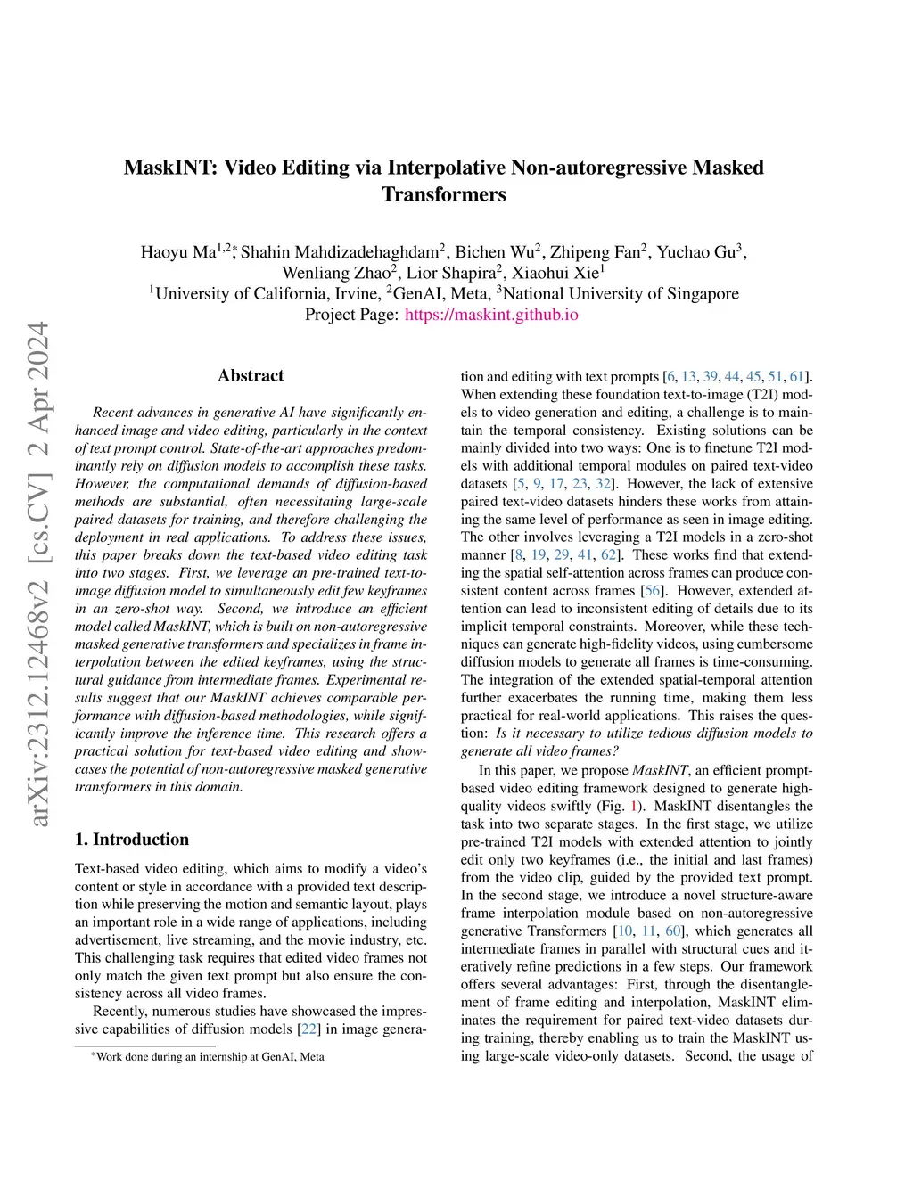MaskINT: Video Editing via Interpolative Non-autoregressive Masked