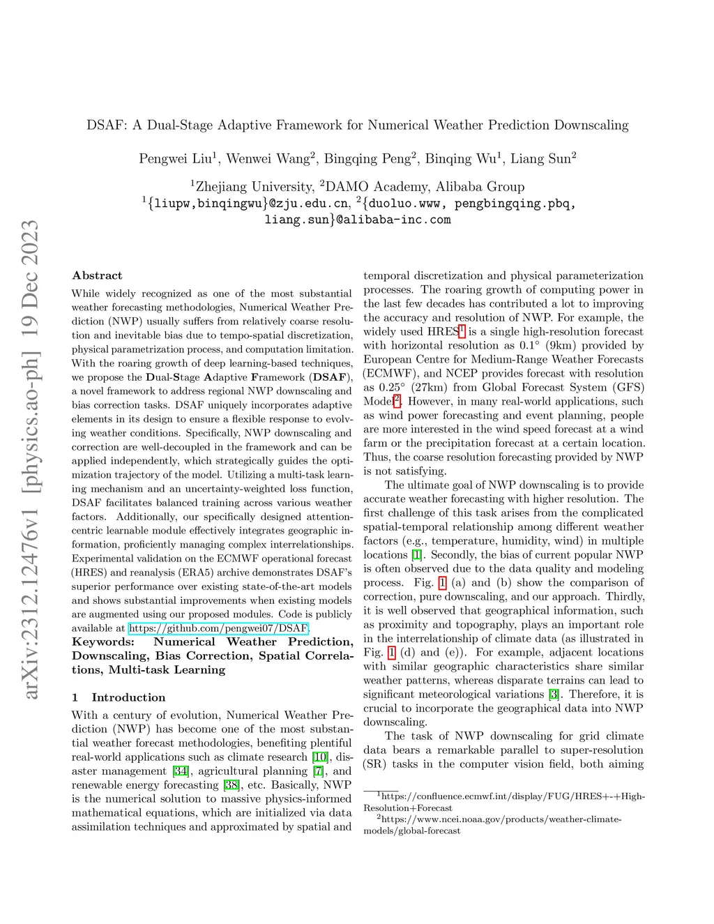 DSAF: A Dual-Stage Adaptive Framework for Numerical Weather Prediction