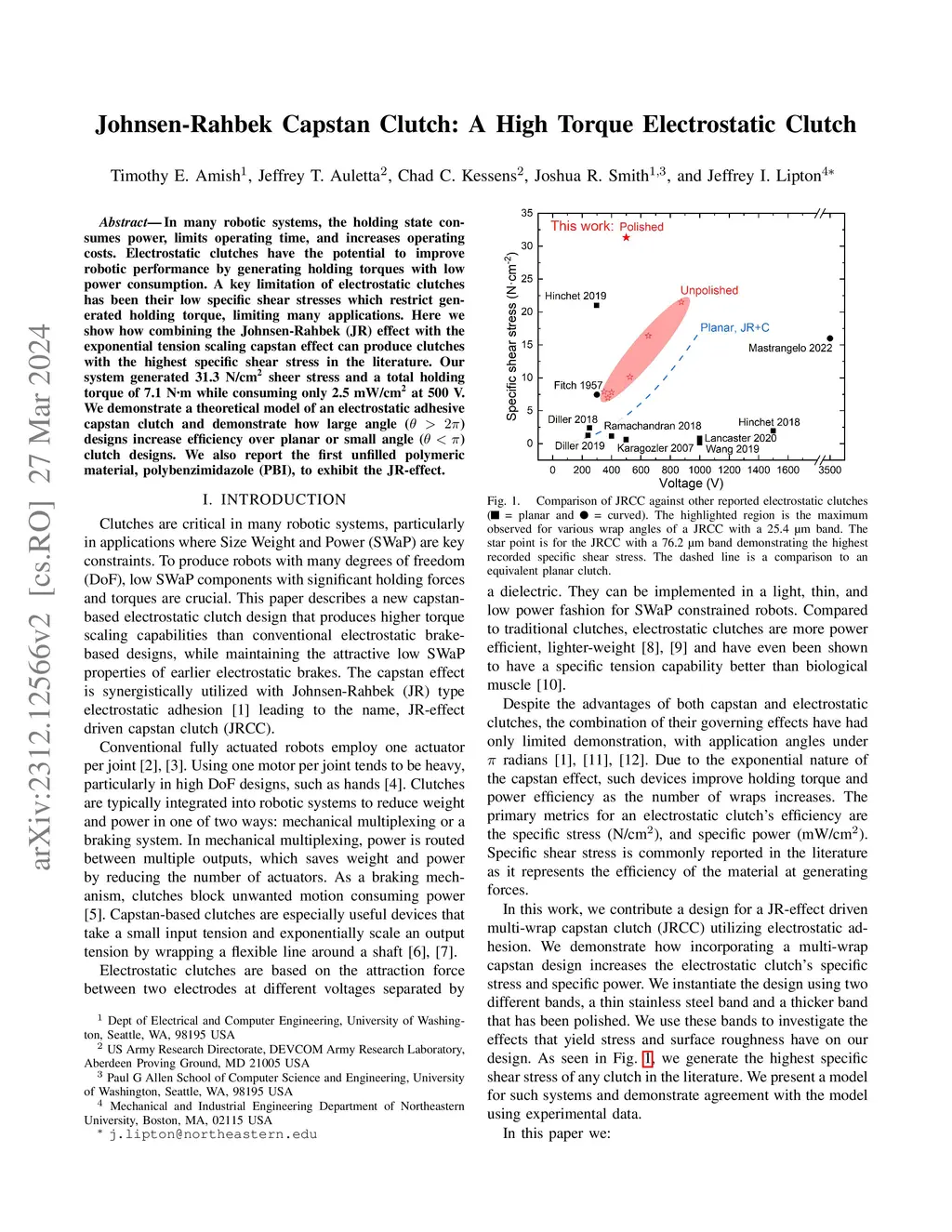 Johnsen-Rahbek Capstan Clutch: A High Torque Electrostatic Clutch