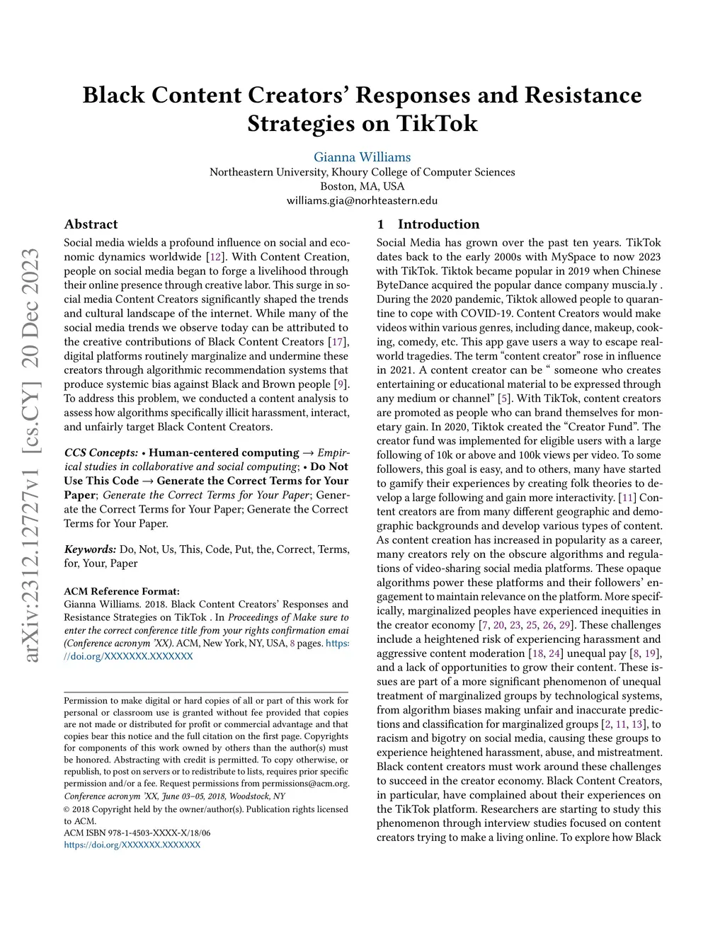 Social media wields a profound influence on social and economic dynamics worldwide, people on social media began to forge a livelihood through their online presence through creative labor. This surge in social media Content Creators significantly shaped the trends and cultural landscape of the internet. While many of the social media trends we observe today can be attributed to the creative contributions of Black Content Creators, digital platforms routinely marginalize and undermine these creators through algorithmic recommendation systems that produce systemic bias against Black and Brown people. To address this problem, we conducted a content analysis to assess how algorithms specifically illicit harassment, interact, and unfairly target Black Content Creators.