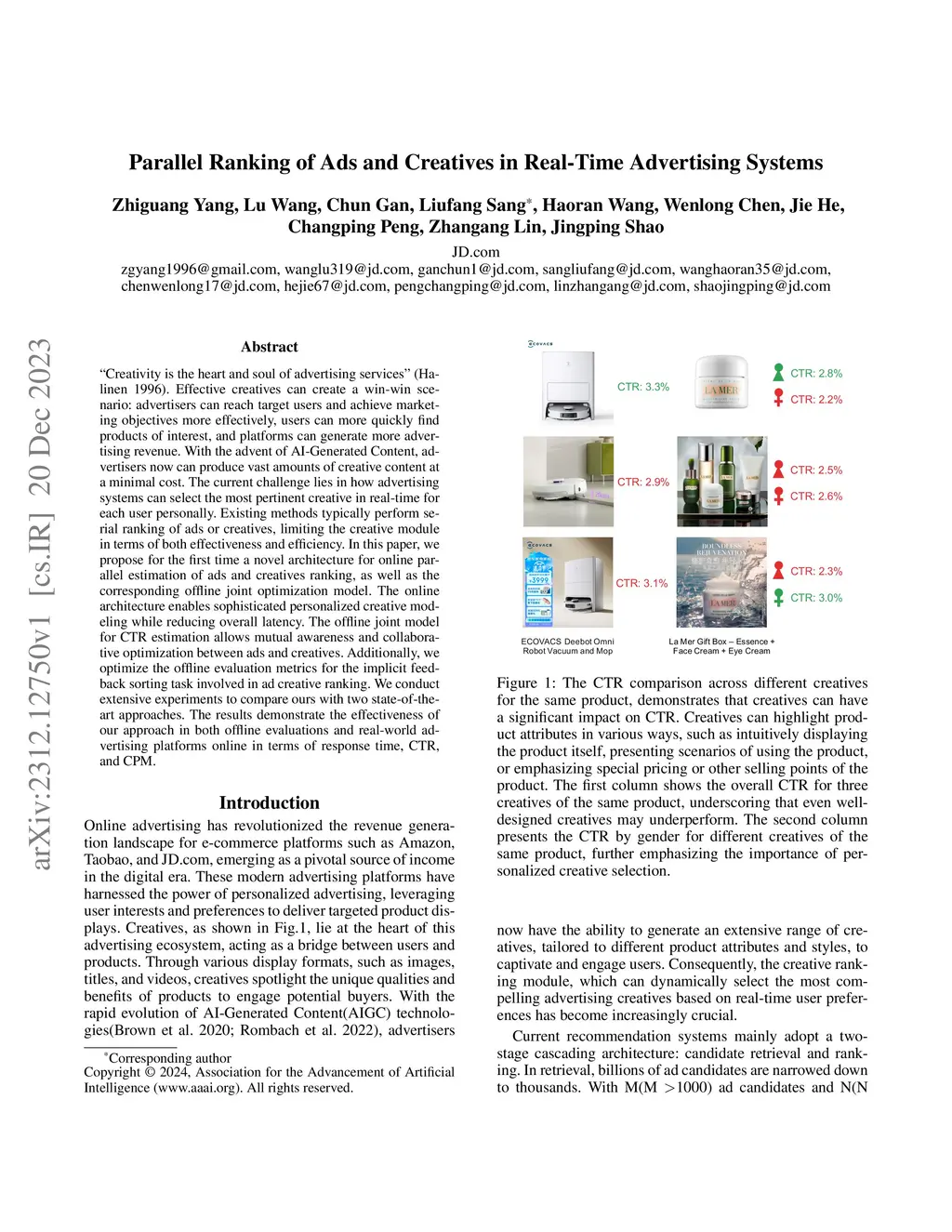 Parallel Ranking of Ads and Creatives in Real-Time Advertising Systems