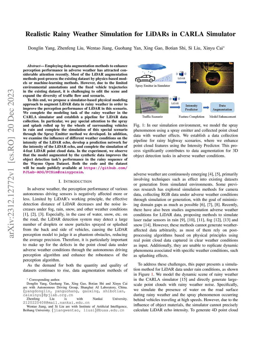 Realistic Rainy Weather Simulation for LiDARs in CARLA Simulator