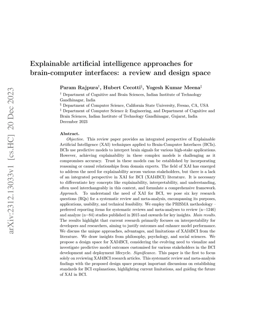 This review paper provides an integrated perspective of Explainable Artificial Intelligence techniques applied to Brain-Computer Interfaces. BCIs use predictive models to interpret brain signals for various high-stake applications. However, achieving explainability in these complex models is challenging as it compromises accuracy. The field of XAI has emerged to address the need for explainability across various stakeholders, but there is a lack of an integrated perspective in XAI for BCI (XAI4BCI) literature. It is necessary to differentiate key concepts like explainability, interpretability, and understanding in this context and formulate a comprehensive framework. To understand the need of XAI for BCI, we pose six key research questions for a systematic review and meta-analysis, encompassing its purposes, applications, usability, and technical feasibility. We employ the PRISMA methodology -- preferred reporting items for systematic reviews and meta-analyses to review (n=1246) and analyze (n=84) studies published in 2015 and onwards for key insights. The results highlight that current research primarily focuses on interpretability for developers and researchers, aiming to justify outcomes and enhance model performance. We discuss the unique approaches, advantages, and limitations of XAI4BCI from the literature. We draw insights from philosophy, psychology, and social sciences. We propose a design space for XAI4BCI, considering the evolving need to visualize and investigate predictive model outcomes customised for various stakeholders in the BCI development and deployment lifecycle. This paper is the first to focus solely on reviewing XAI4BCI research articles. This systematic review and meta-analysis findings with the proposed design space prompt important discussions on establishing standards for BCI explanations, highlighting current limitations, and guiding the future of XAI in BCI.