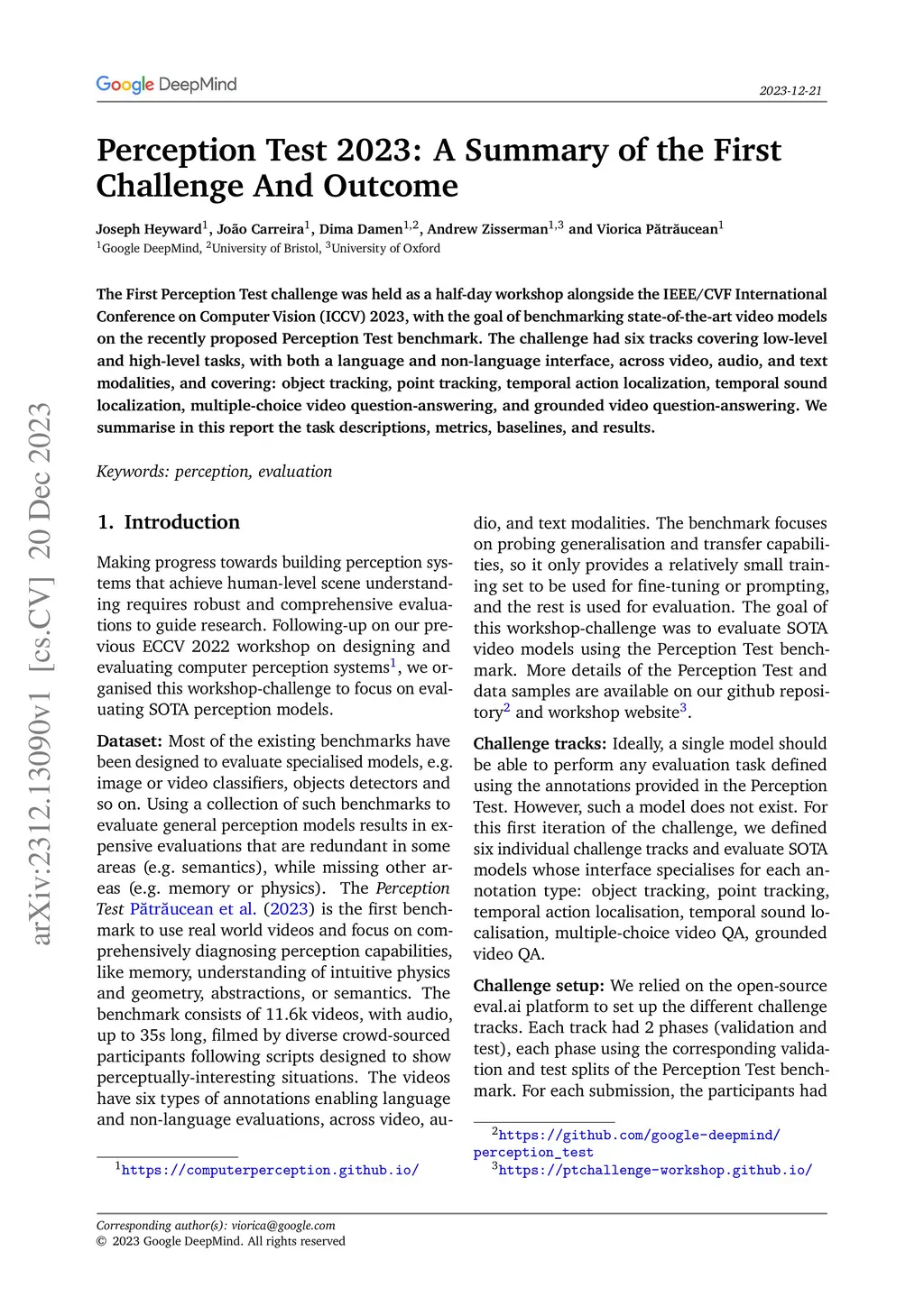 Perception Test 2023: A Summary of the First Challenge And Outcome