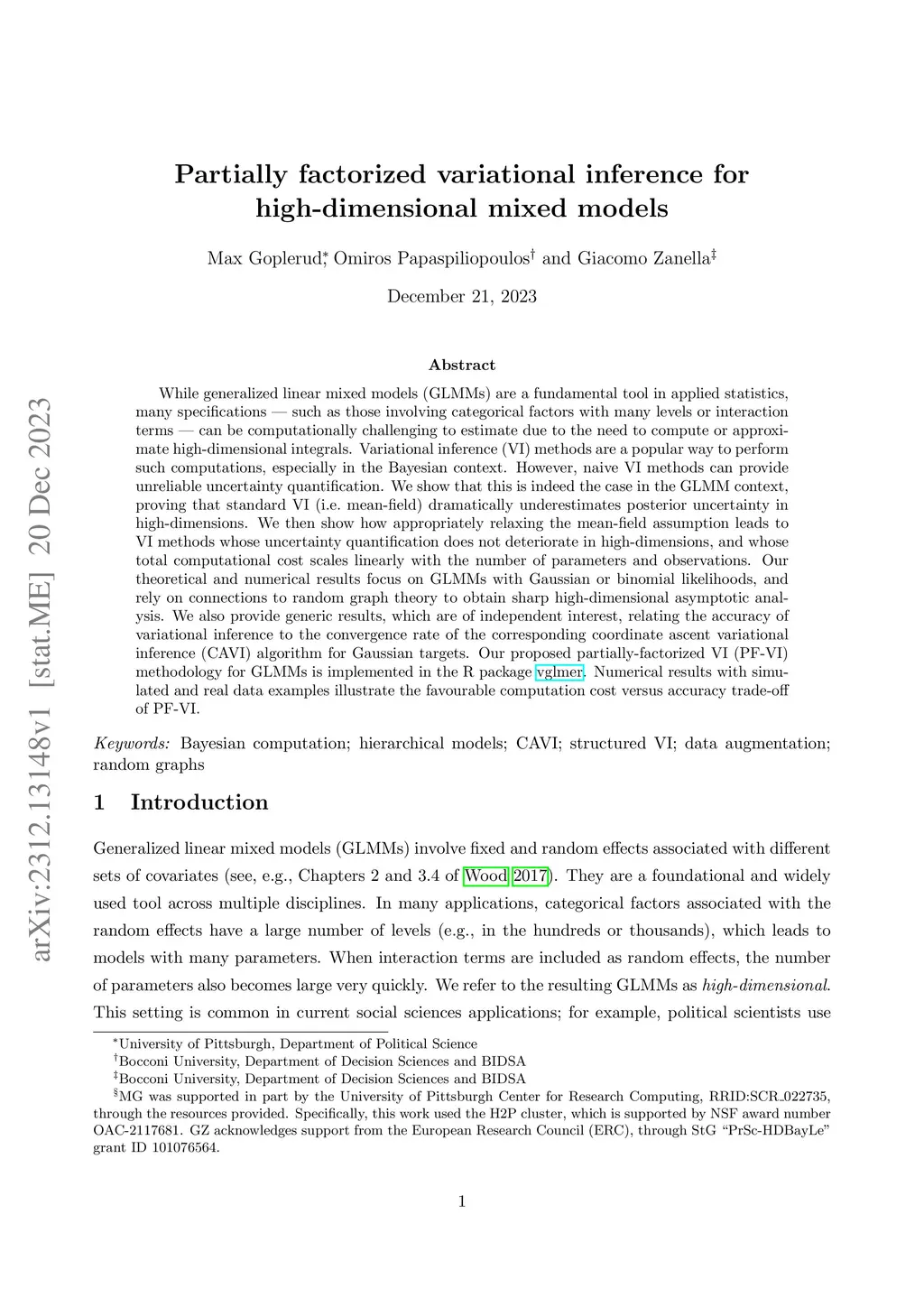 Partially factorized variational inference for high-dimensional mixed