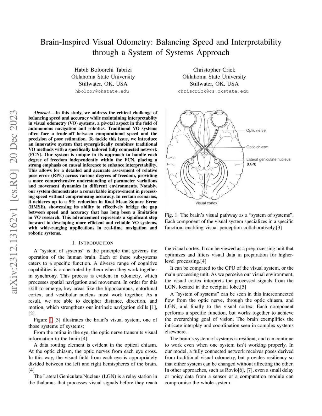 Brain-Inspired Visual Odometry: Balancing Speed and Interpretability