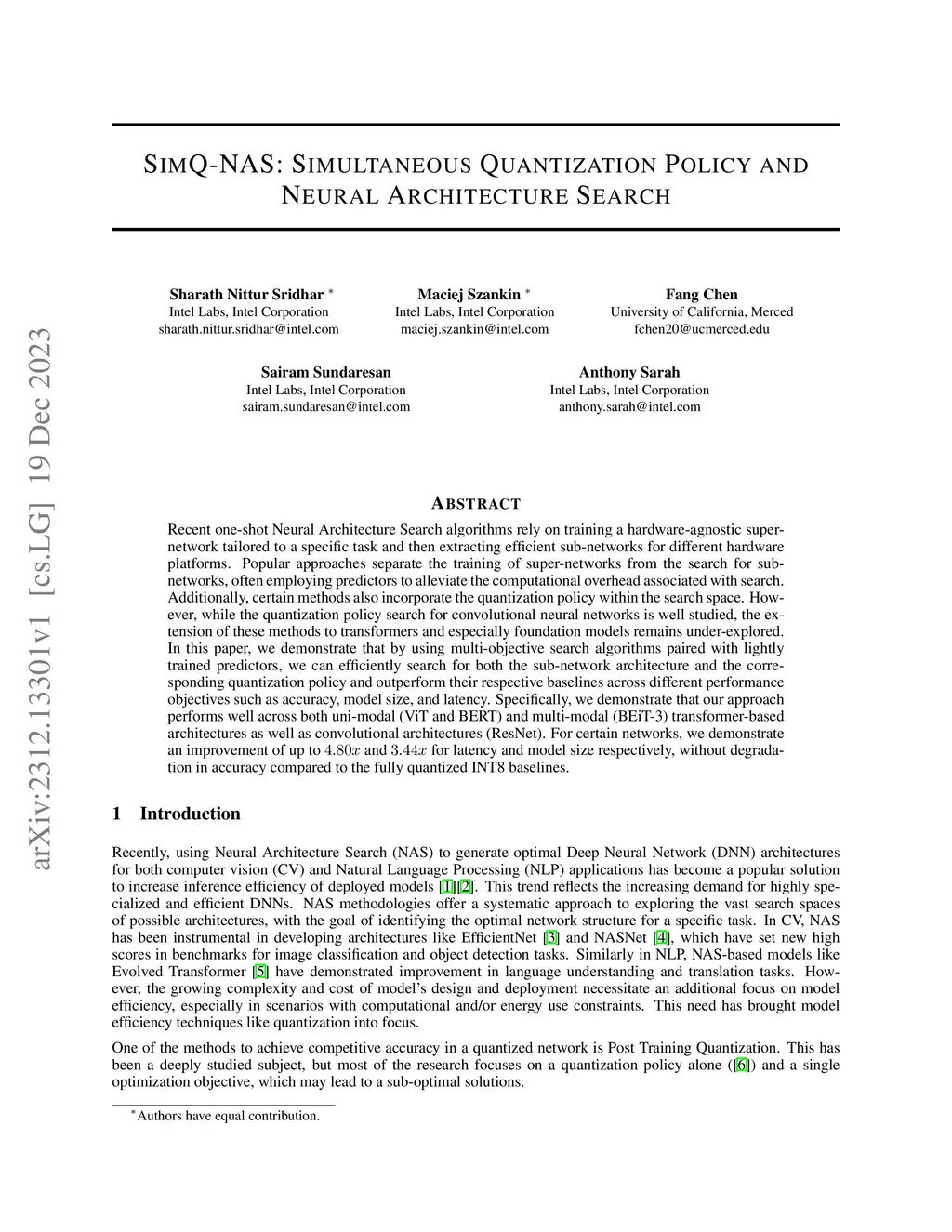 SimQ-NAS: Simultaneous Quantization Policy and Neural Architecture