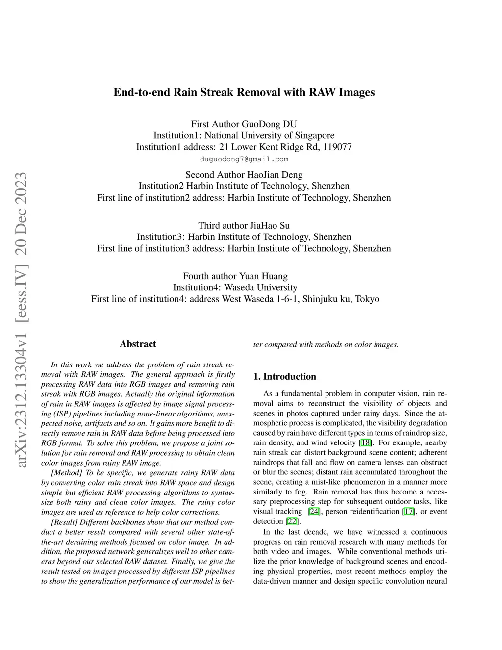 End-to-end Rain Streak Removal with RAW Images