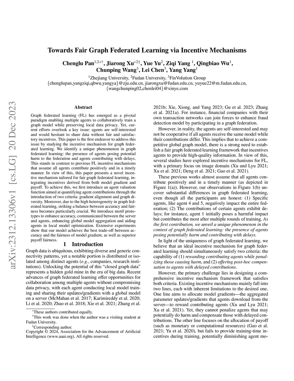 Graph federated learning (FL) has emerged as a pivotal paradigm enabling multiple agents to collaboratively train a graph model while preserving local data privacy. Yet, current efforts overlook a key issue: agents are self-interested and would hesitant to share data without fair and satisfactory incentives. This paper is the first endeavor to address this issue by studying the incentive mechanism for graph federated learning. We identify a unique phenomenon in graph federated learning: the presence of agents posing potential harm to the federation and agents contributing with delays. This stands in contrast to previous FL incentive mechanisms that assume all agents contribute positively and in a timely manner. In view of this, this paper presents a novel incentive mechanism tailored for fair graph federated learning, integrating incentives derived from both model gradient and payoff. To achieve this, we first introduce an agent valuation function aimed at quantifying agent contributions through the introduction of two criteria: gradient alignment and graph diversity. Moreover, due to the high heterogeneity in graph federated learning, striking a balance between accuracy and fairness becomes particularly crucial. We introduce motif prototypes to enhance accuracy, communicated between the server and agents, enhancing global model aggregation and aiding agents in local model optimization. Extensive experiments show that our model achieves the best trade-off between accuracy and the fairness of model gradient, as well as superior payoff fairness.