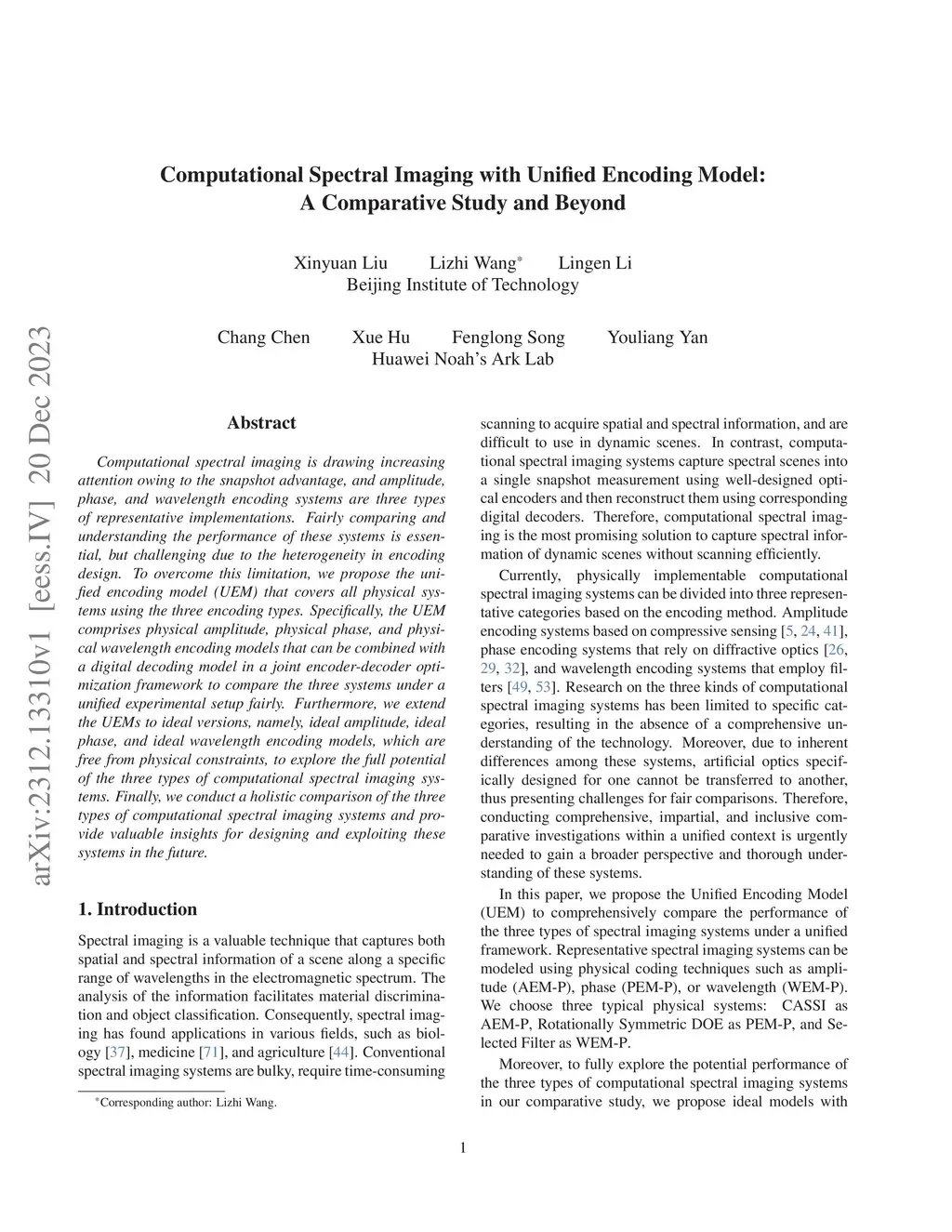 Computational Spectral Imaging with Unified Encoding Model: A