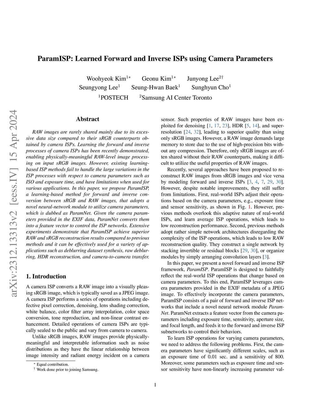 ParamISP: Learned Forward and Inverse ISPs using Camera Parameters