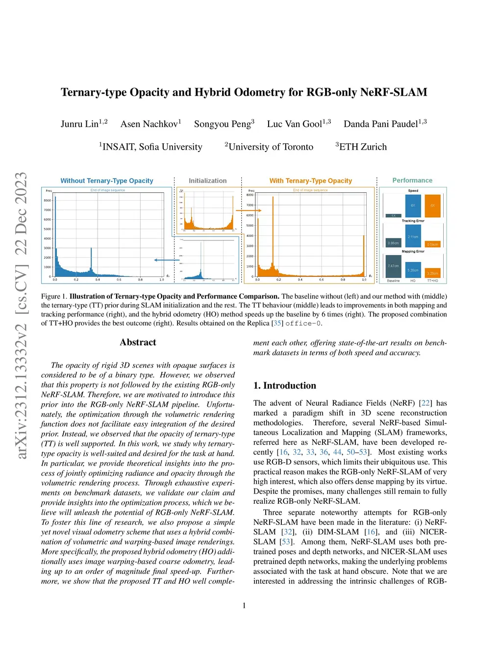 Ternary-type Opacity and Hybrid Odometry for RGB-only NeRF-SLAM