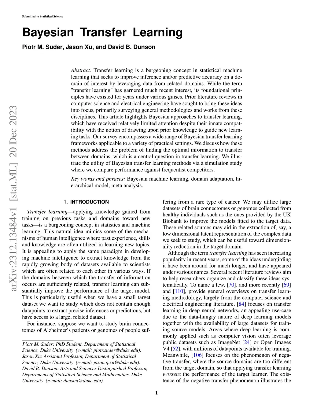 Transfer learning is a burgeoning concept in statistical machine learning that seeks to improve inference and/or predictive accuracy on a domain of interest by leveraging data from related domains. While the term "transfer learning" has garnered much recent interest, its foundational principles have existed for years under various guises. Prior literature reviews in computer science and electrical engineering have sought to bring these ideas into focus, primarily surveying general methodologies and works from these disciplines. This article highlights Bayesian approaches to transfer learning, which have received relatively limited attention despite their innate compatibility with the notion of drawing upon prior knowledge to guide new learning tasks. Our survey encompasses a wide range of Bayesian transfer learning frameworks applicable to a variety of practical settings. We discuss how these methods address the problem of finding the optimal information to transfer between domains, which is a central question in transfer learning. We illustrate the utility of Bayesian transfer learning methods via a simulation study where we compare performance against frequentist competitors.