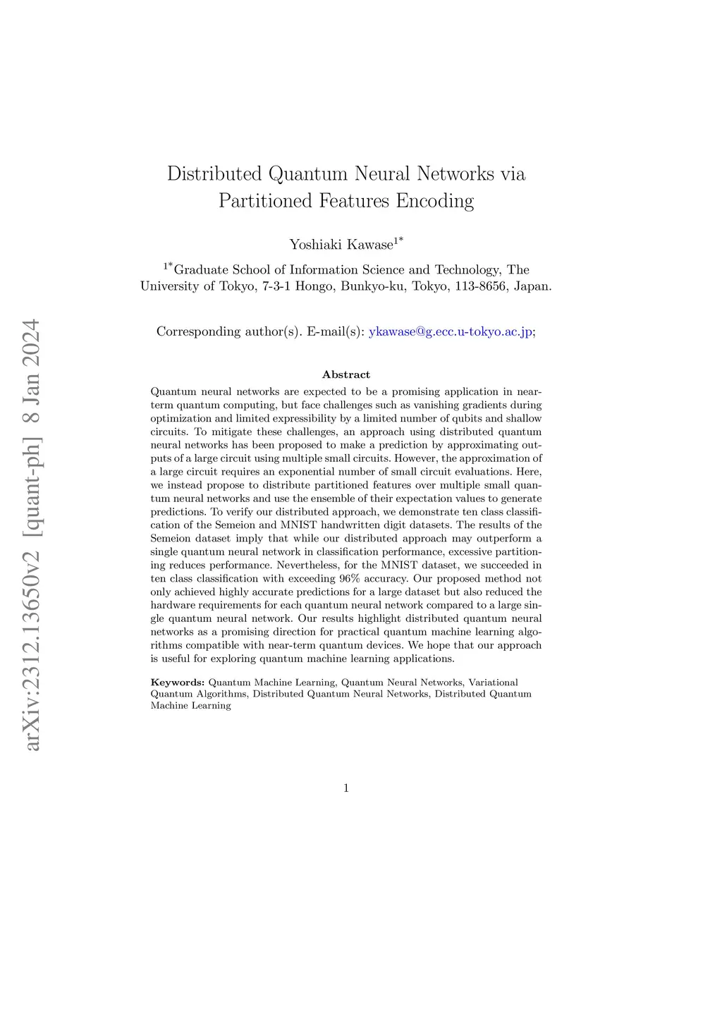 Distributed Quantum Neural Networks via Partitioned Features Encoding