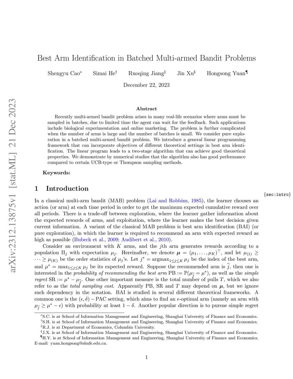 Best Arm Identification in Batched Multi-armed Bandit Problems