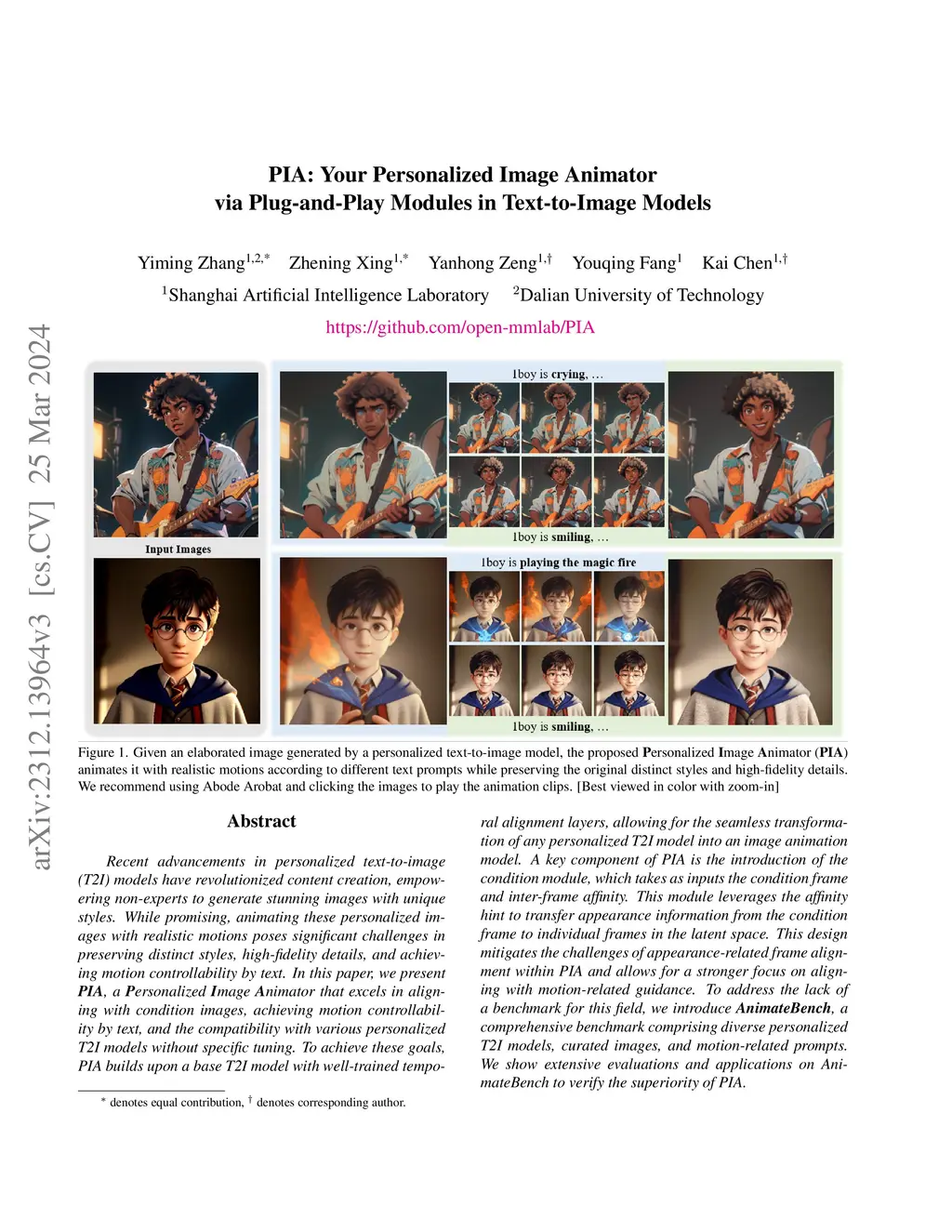 PIA: Your Personalized Image Animator via Plug-and-Play Modules in