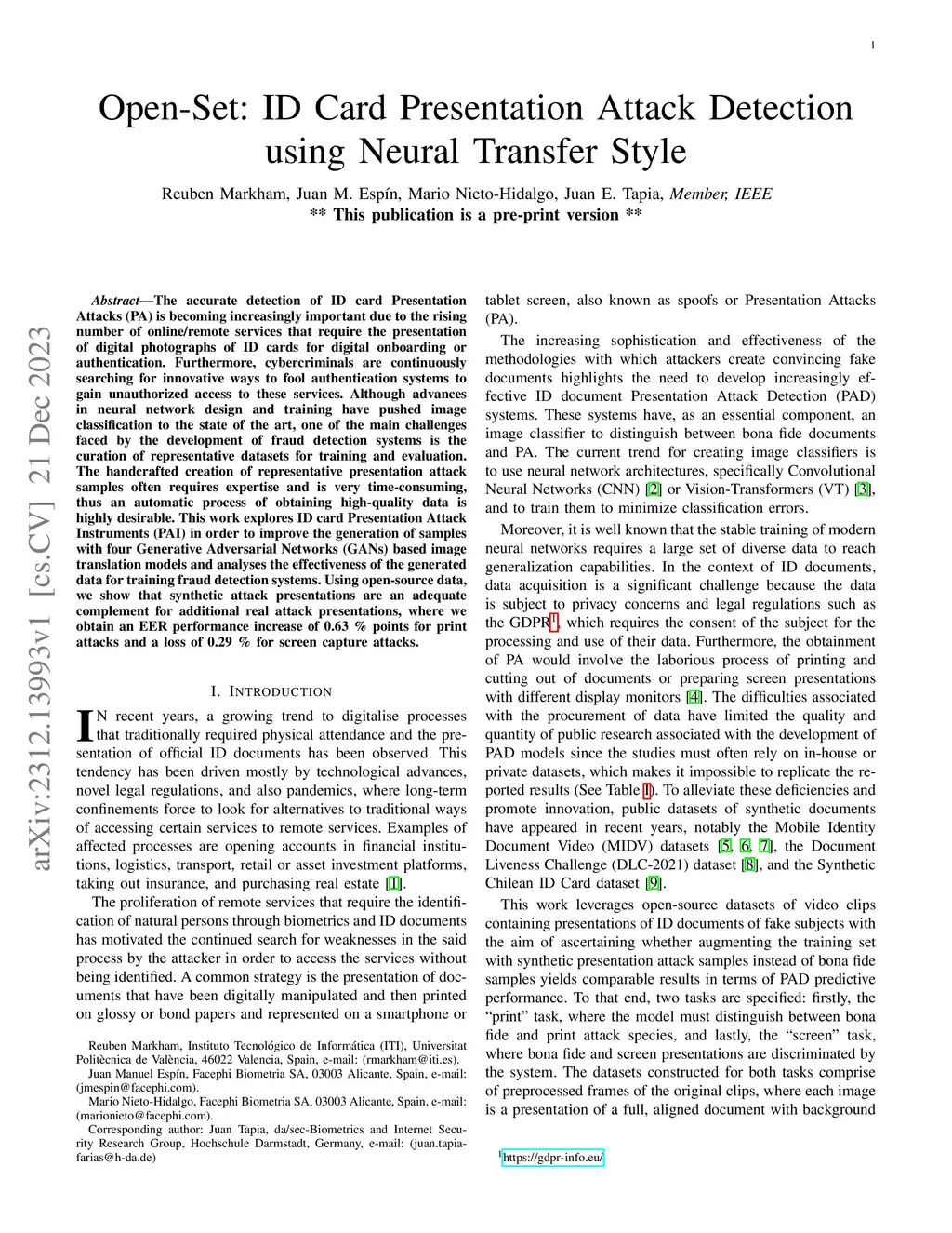 Open-Set: ID Card Presentation Attack Detection using Neural Transfer