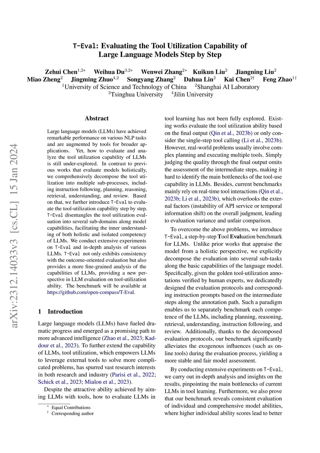 T-Eval: Evaluating the Tool Utilization Capability of Large Language