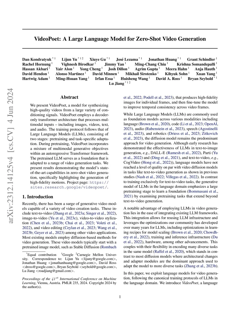 VideoPoet: A Large Language Model for Zero-Shot Video Generation