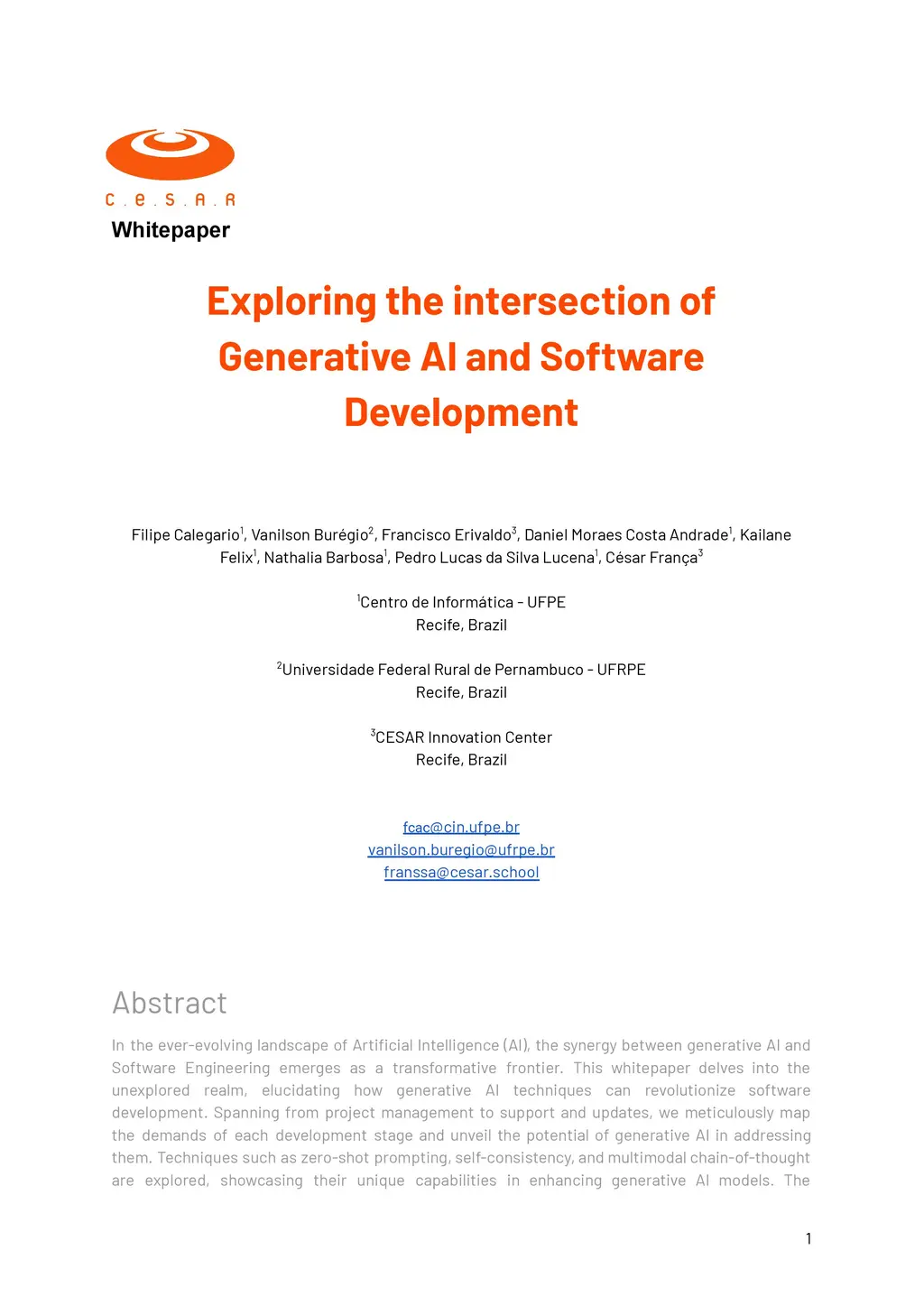 In the ever-evolving landscape of Artificial Intelligence (AI), the synergy between generative AI and Software Engineering emerges as a transformative frontier. This whitepaper delves into the unexplored realm, elucidating how generative AI techniques can revolutionize software development. Spanning from project management to support and updates, we meticulously map the demands of each development stage and unveil the potential of generative AI in addressing them. Techniques such as zero-shot prompting, self-consistency, and multimodal chain-of-thought are explored, showcasing their unique capabilities in enhancing generative AI models. The significance of vector embeddings, context, plugins, tools, and code assistants is underscored, emphasizing their role in capturing semantic information and amplifying generative AI capabilities. Looking ahead, this intersection promises to elevate productivity, improve code quality, and streamline the software development process. This whitepaper serves as a guide for stakeholders, urging discussions and experiments in the application of generative AI in Software Engineering, fostering innovation and collaboration for a qualitative leap in the efficiency and effectiveness of software development.