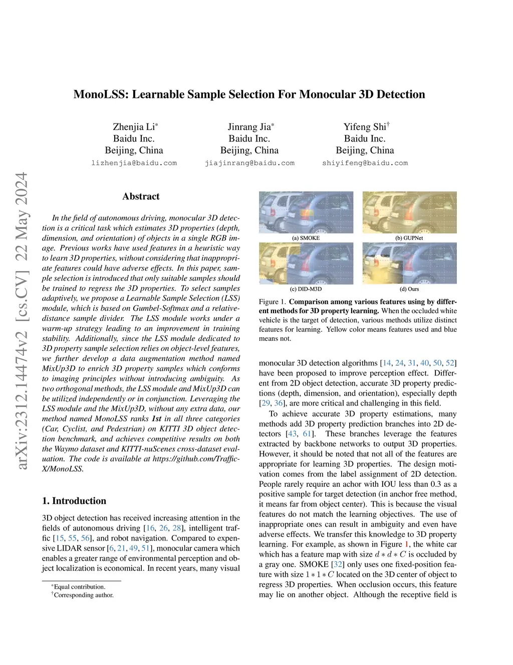 MonoLSS: Learnable Sample Selection For Monocular 3D Detection