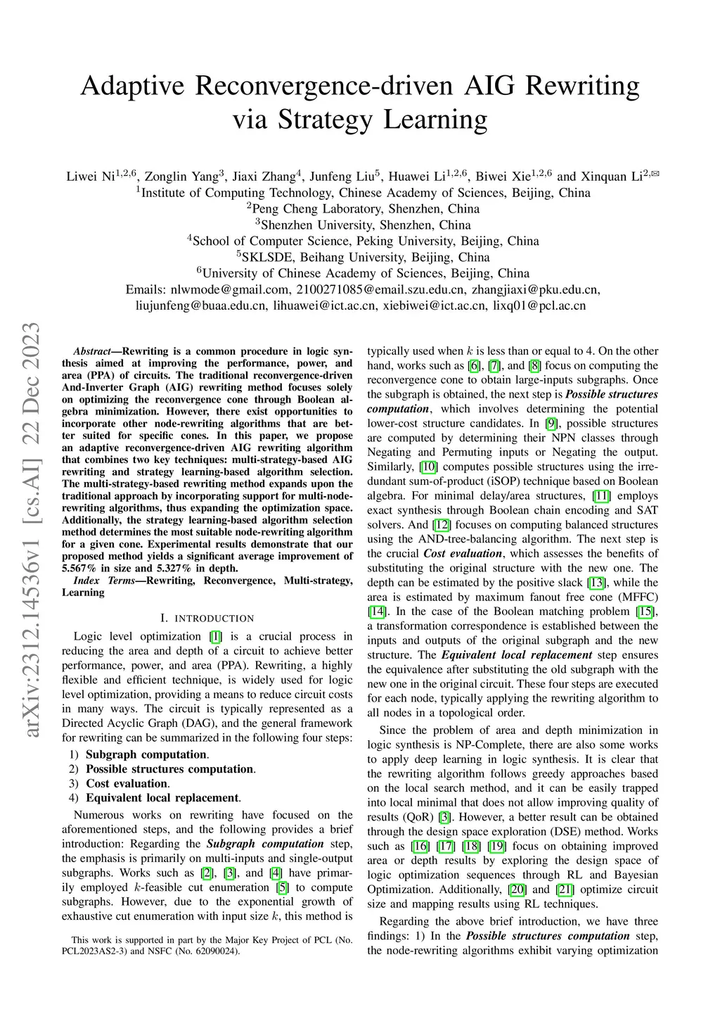 Rewriting is a common procedure in logic synthesis aimed at improving the performance, power, and area (PPA) of circuits. The traditional reconvergence-driven And-Inverter Graph (AIG) rewriting method focuses solely on optimizing the reconvergence cone through Boolean algebra minimization. However, there exist opportunities to incorporate other node-rewriting algorithms that are better suited for specific cones. In this paper, we propose an adaptive reconvergence-driven AIG rewriting algorithm that combines two key techniques: multi-strategy-based AIG rewriting and strategy learning-based algorithm selection. The multi-strategy-based rewriting method expands upon the traditional approach by incorporating support for multi-node-rewriting algorithms, thus expanding the optimization space. Additionally, the strategy learning-based algorithm selection method determines the most suitable node-rewriting algorithm for a given cone. Experimental results demonstrate that our proposed method yields a significant average improvement of 5.567\% in size and 5.327\% in depth.