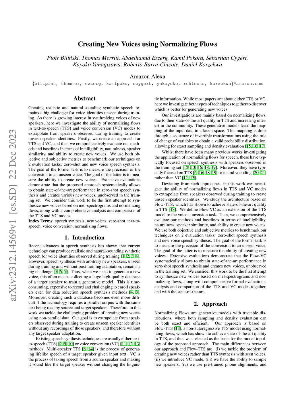 Creating realistic and natural-sounding synthetic speech remains a big challenge for voice identities unseen during training. As there is growing interest in synthesizing voices of new speakers, here we investigate the ability of normalizing flows in text-to-speech (TTS) and voice conversion (VC) modes to extrapolate from speakers observed during training to create unseen speaker identities. Firstly, we create an approach for TTS and VC, and then we comprehensively evaluate our methods and baselines in terms of intelligibility, naturalness, speaker similarity, and ability to create new voices. We use both objective and subjective metrics to benchmark our techniques on 2 evaluation tasks: zero-shot and new voice speech synthesis. The goal of the former task is to measure the precision of the conversion to an unseen voice. The goal of the latter is to measure the ability to create new voices. Extensive evaluations demonstrate that the proposed approach systematically allows to obtain state-of-the-art performance in zero-shot speech synthesis and creates various new voices, unobserved in the training set. We consider this work to be the first attempt to synthesize new voices based on mel-spectrograms and normalizing flows, along with a comprehensive analysis and comparison of the TTS and VC modes.