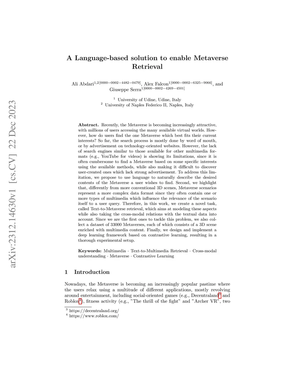 A Language-based solution to enable Metaverse Retrieval