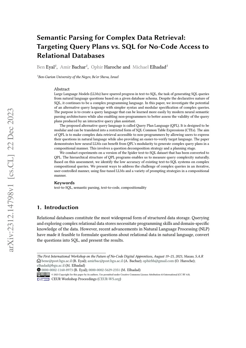 Large Language Models (LLMs) have spurred progress in text-to-SQL, the task of generating SQL queries from natural language questions based on a given database schema. Despite the declarative nature of SQL, it continues to be a complex programming language. In this paper, we investigate the potential of an alternative query language with simpler syntax and modular specification of complex queries. The purpose is to create a query language that can be learned more easily by modern neural semantic parsing architectures while also enabling non-programmers to better assess the validity of the query plans produced by an interactive query plan assistant. The proposed alternative query language is called Query Plan Language (QPL). It is designed to be modular and can be translated into a restricted form of SQL Common Table Expressions (CTEs). The aim of QPL is to make complex data retrieval accessible to non-programmers by allowing users to express their questions in natural language while also providing an easier-to-verify target language. The paper demonstrates how neural LLMs can benefit from QPL's modularity to generate complex query plans in a compositional manner. This involves a question decomposition strategy and a planning stage. We conduct experiments on a version of the Spider text-to-SQL dataset that has been converted to QPL. The hierarchical structure of QPL programs enables us to measure query complexity naturally. Based on this assessment, we identify the low accuracy of existing text-to-SQL systems on complex compositional queries. We present ways to address the challenge of complex queries in an iterative, user-controlled manner, using fine-tuned LLMs and a variety of prompting strategies in a compositional manner.