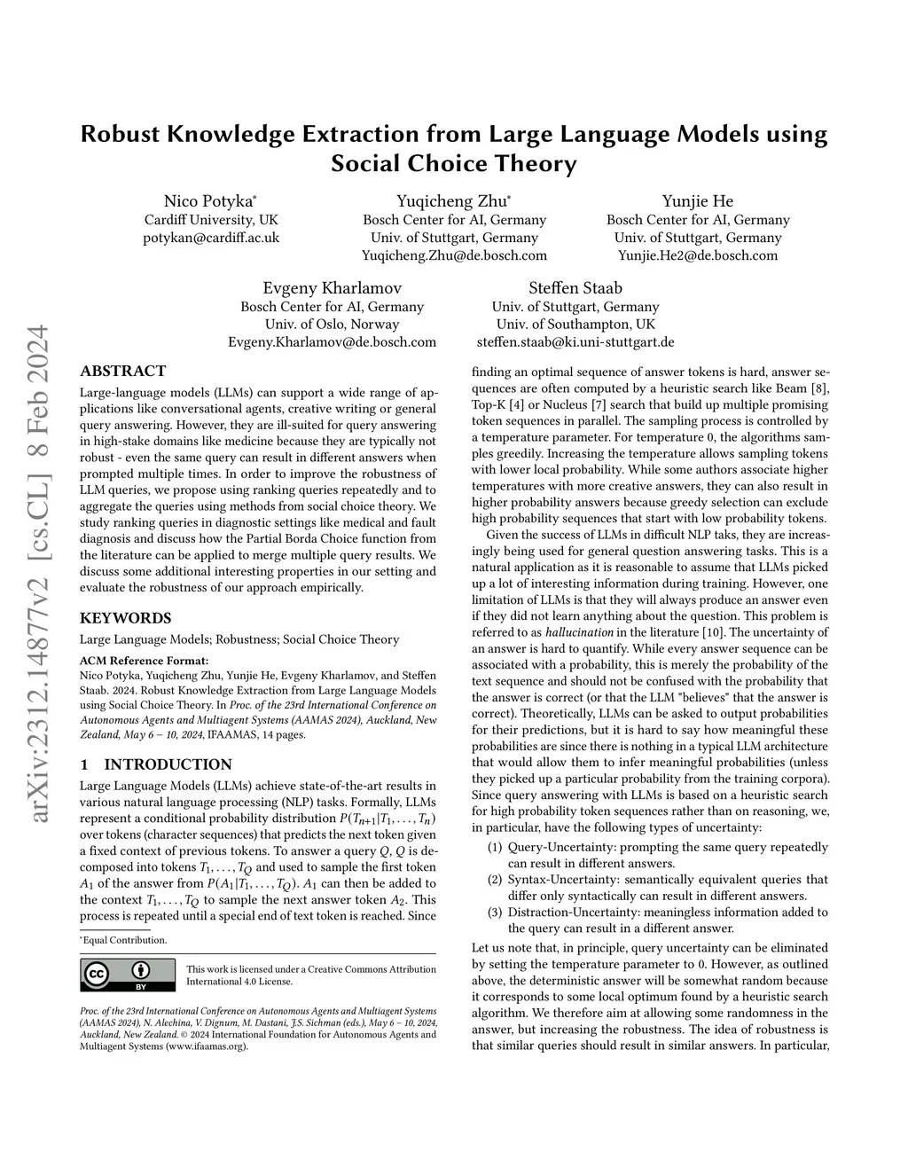 Large-language models (LLMs) can support a wide range of applications like conversational agents, creative writing or general query answering. However, they are ill-suited for query answering in high-stake domains like medicine because they are typically not robust - even the same query can result in different answers when prompted multiple times. In order to improve the robustness of LLM queries, we propose using ranking queries repeatedly and to aggregate the queries using methods from social choice theory. We study ranking queries in diagnostic settings like medical and fault diagnosis and discuss how the Partial Borda Choice function from the literature can be applied to merge multiple query results. We discuss some additional interesting properties in our setting and evaluate the robustness of our approach empirically.