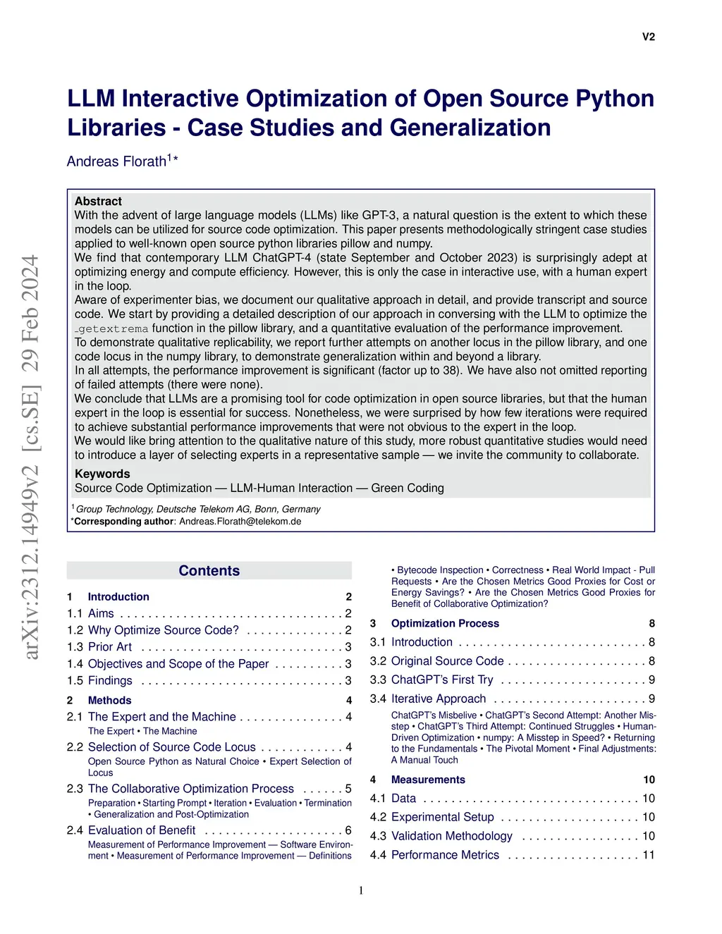 With the advent of large language models (LLMs) like GPT-3, a natural question is the extent to which these models can be utilized for source code optimization. This paper presents methodologically stringent case studies applied to well-known open source python libraries pillow and numpy. We find that contemporary LLM ChatGPT-4 (state September and October 2023) is surprisingly adept at optimizing energy and compute efficiency. However, this is only the case in interactive use, with a human expert in the loop. Aware of experimenter bias, we document our qualitative approach in detail, and provide transcript and source code. We start by providing a detailed description of our approach in conversing with the LLM to optimize the _getextrema function in the pillow library, and a quantitative evaluation of the performance improvement. To demonstrate qualitative replicability, we report further attempts on another locus in the pillow library, and one code locus in the numpy library, to demonstrate generalization within and beyond a library. In all attempts, the performance improvement is significant (factor up to 38). We have also not omitted reporting of failed attempts (there were none). We conclude that LLMs are a promising tool for code optimization in open source libraries, but that the human expert in the loop is essential for success. Nonetheless, we were surprised by how few iterations were required to achieve substantial performance improvements that were not obvious to the expert in the loop. We would like bring attention to the qualitative nature of this study, more robust quantitative studies would need to introduce a layer of selecting experts in a representative sample -- we invite the community to collaborate.