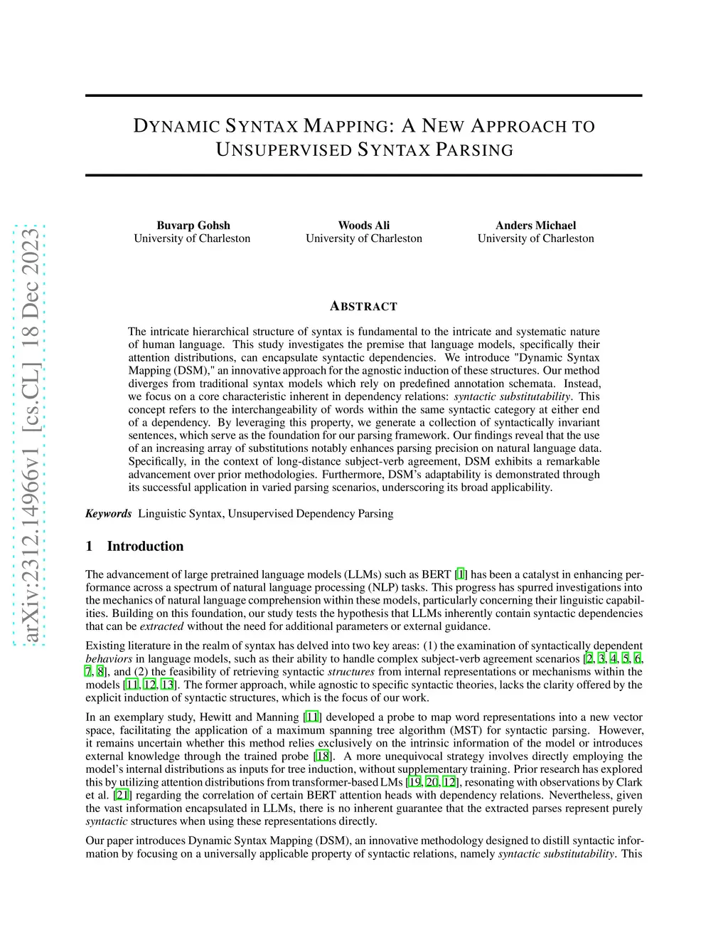 Dynamic Syntax Mapping: A New Approach to Unsupervised Syntax Parsing