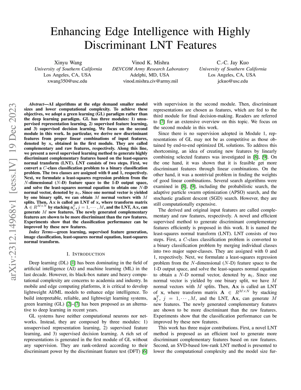 Enhancing Edge Intelligence with Highly Discriminant LNT Features