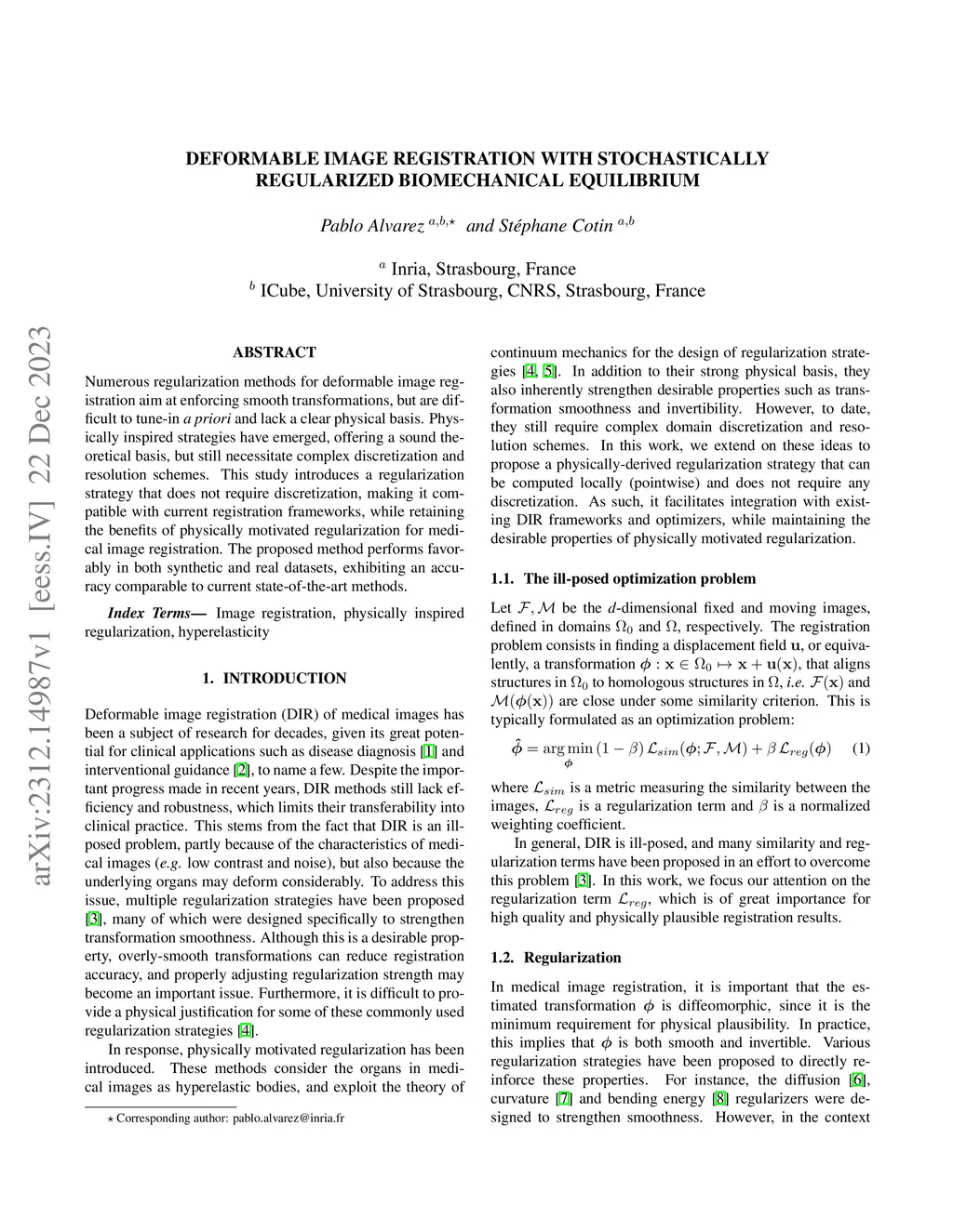 Numerous regularization methods for deformable image registration aim at enforcing smooth transformations, but are difficult to tune-in a priori and lack a clear physical basis. Physically inspired strategies have emerged, offering a sound theoretical basis, but still necessitating complex discretization and resolution schemes. This study introduces a regularization strategy that does not require discretization, making it compatible with current registration frameworks, while retaining the benefits of physically motivated regularization for medical image registration. The proposed method performs favorably in both synthetic and real datasets, exhibiting an accuracy comparable to current state-of-the-art methods.