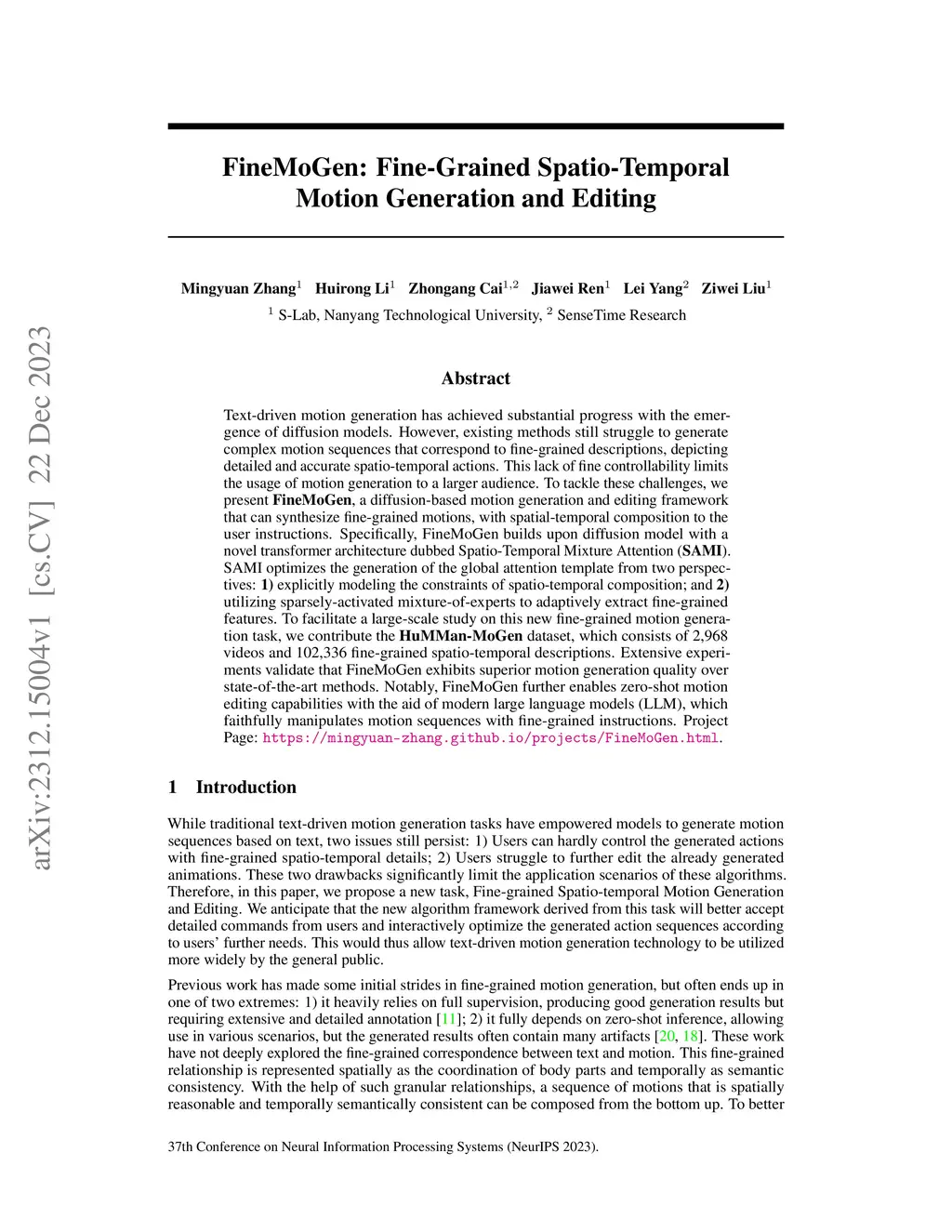 Text-driven motion generation has achieved substantial progress with the emergence of diffusion models. However, existing methods still struggle to generate complex motion sequences that correspond to fine-grained descriptions, depicting detailed and accurate spatio-temporal actions. This lack of fine controllability limits the usage of motion generation to a larger audience. To tackle these challenges, we present FineMoGen, a diffusion-based motion generation and editing framework that can synthesize fine-grained motions, with spatial-temporal composition to the user instructions. Specifically, FineMoGen builds upon diffusion model with a novel transformer architecture dubbed Spatio-Temporal Mixture Attention (SAMI). SAMI optimizes the generation of the global attention template from two perspectives: 1) explicitly modeling the constraints of spatio-temporal composition; and 2) utilizing sparsely-activated mixture-of-experts to adaptively extract fine-grained features. To facilitate a large-scale study on this new fine-grained motion generation task, we contribute the HuMMan-MoGen dataset, which consists of 2,968 videos and 102,336 fine-grained spatio-temporal descriptions. Extensive experiments validate that FineMoGen exhibits superior motion generation quality over state-of-the-art methods. Notably, FineMoGen further enables zero-shot motion editing capabilities with the aid of modern large language models (LLM), which faithfully manipulates motion sequences with fine-grained instructions. Project Page: https://mingyuan-zhang.github.io/projects/FineMoGen.html