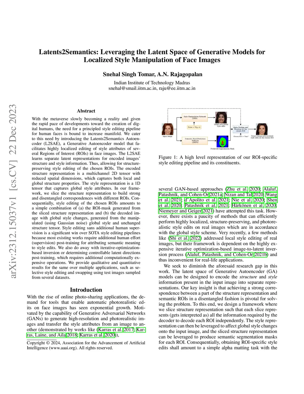 With the metaverse slowly becoming a reality and given the rapid pace of developments toward the creation of digital humans, the need for a principled style editing pipeline for human faces is bound to increase manifold. We cater to this need by introducing the Latents2Semantics Autoencoder (L2SAE), a Generative Autoencoder model that facilitates highly localized editing of style attributes of several Regions of Interest (ROIs) in face images. The L2SAE learns separate latent representations for encoded images' structure and style information. Thus, allowing for structure-preserving style editing of the chosen ROIs. The encoded structure representation is a multichannel 2D tensor with reduced spatial dimensions, which captures both local and global structure properties. The style representation is a 1D tensor that captures global style attributes. In our framework, we slice the structure representation to build strong and disentangled correspondences with different ROIs. Consequentially, style editing of the chosen ROIs amounts to a simple combination of (a) the ROI-mask generated from the sliced structure representation and (b) the decoded image with global style changes, generated from the manipulated (using Gaussian noise) global style and unchanged structure tensor. Style editing sans additional human supervision is a significant win over SOTA style editing pipelines because most existing works require additional human effort (supervision) post-training for attributing semantic meaning to style edits. We also do away with iterative-optimization-based inversion or determining controllable latent directions post-training, which requires additional computationally expensive operations. We provide qualitative and quantitative results for the same over multiple applications, such as selective style editing and swapping using test images sampled from several datasets.