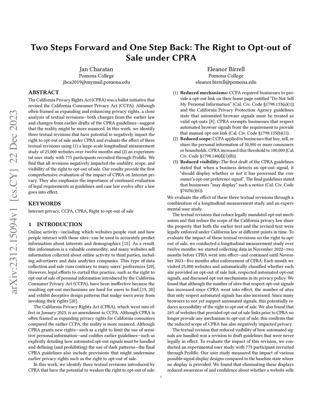 The California Privacy Rights Act (CPRA) was a ballot initiative that revised the California Consumer Privacy Act (CCPA). Although often framed as expanding and enhancing privacy rights, a close analysis of textual revisions -- both changes from the earlier law and changes from earlier drafts of the CPRA guidelines -- suggest that the reality might be more nuanced. In this work, we identify three textual revisions that have potential to negatively impact the right to opt-out of sale under CPRA and evaluate the effect of these textual revisions using (1) a large-scale longitudinal measurement study of 25,000 websites over twelve months and (2) an experimental user study with 775 participants recruited through Prolific. We find that all revisions negatively impacted the usability, scope, and visibility of the right to opt-out of sale. Our results provide the first comprehensive evaluation of the impact of CPRA on Internet privacy. They also emphasize the importance of continued evaluation of legal requirements as guidelines and case law evolve after a law goes into effect.