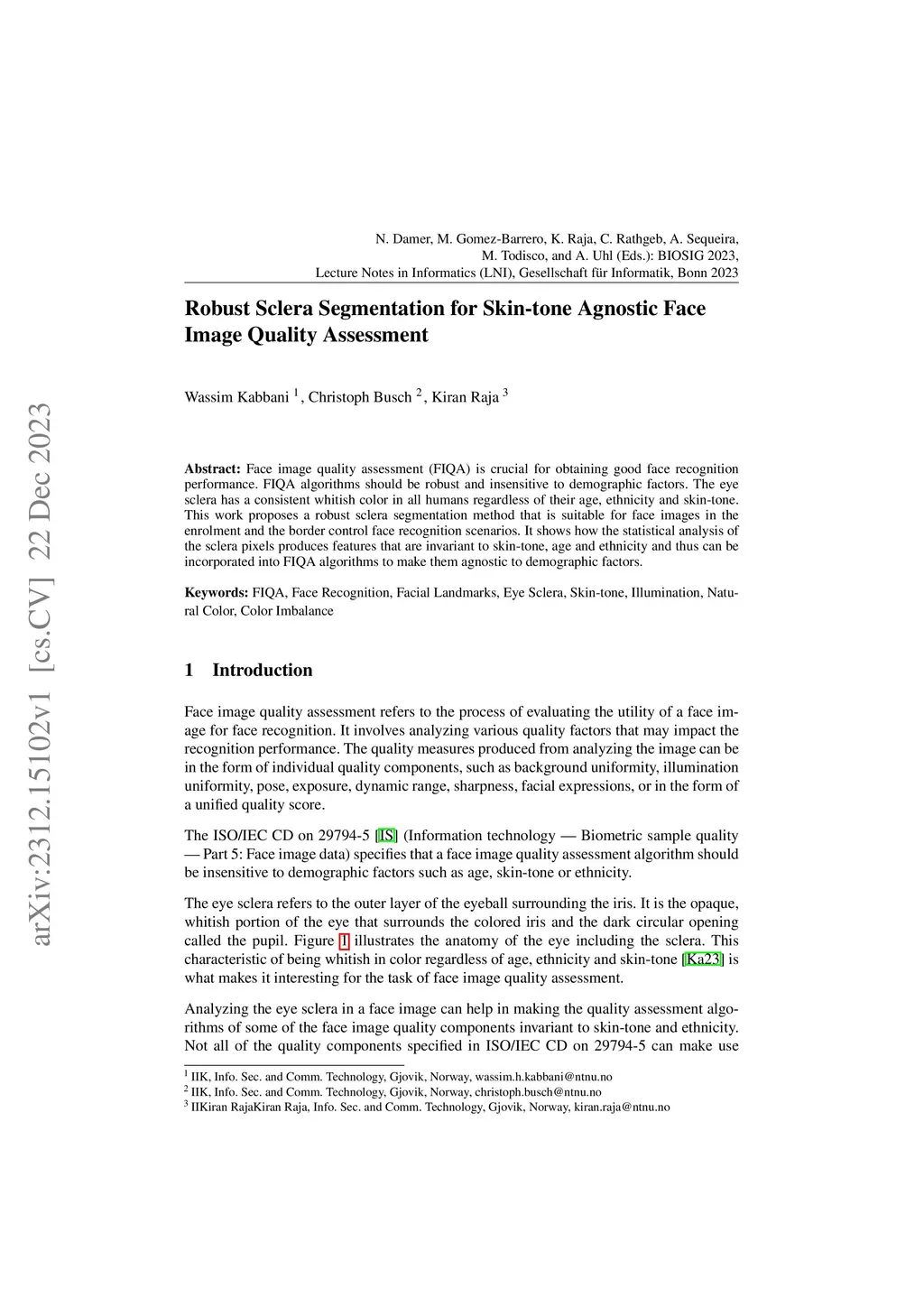 Robust Sclera Segmentation for Skin-tone Agnostic Face Image Quality
