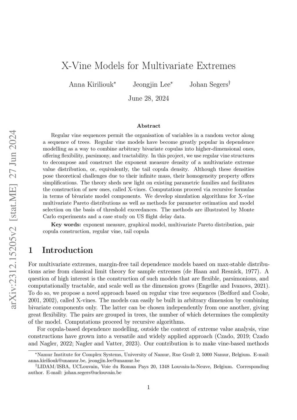 Regular vine sequences permit the organisation of variables in a random vector along a sequence of trees. Regular vine models have become greatly popular in dependence modelling as a way to combine arbitrary bivariate copulas into higher-dimensional ones, offering flexibility, parsimony, and tractability. In this project, we use regular vine structures to decompose and construct the exponent measure density of a multivariate extreme value distribution, or, equivalently, the tail copula density. Although these densities pose theoretical challenges due to their infinite mass, their homogeneity property offers simplifications. The theory sheds new light on existing parametric families and facilitates the construction of new ones, called X-vines. Computations proceed via recursive formulas in terms of bivariate model components. We develop simulation algorithms for X-vine multivariate Pareto distributions as well as methods for parameter estimation and model selection on the basis of threshold exceedances. The methods are illustrated by Monte Carlo experiments and a case study on US flight delay data.