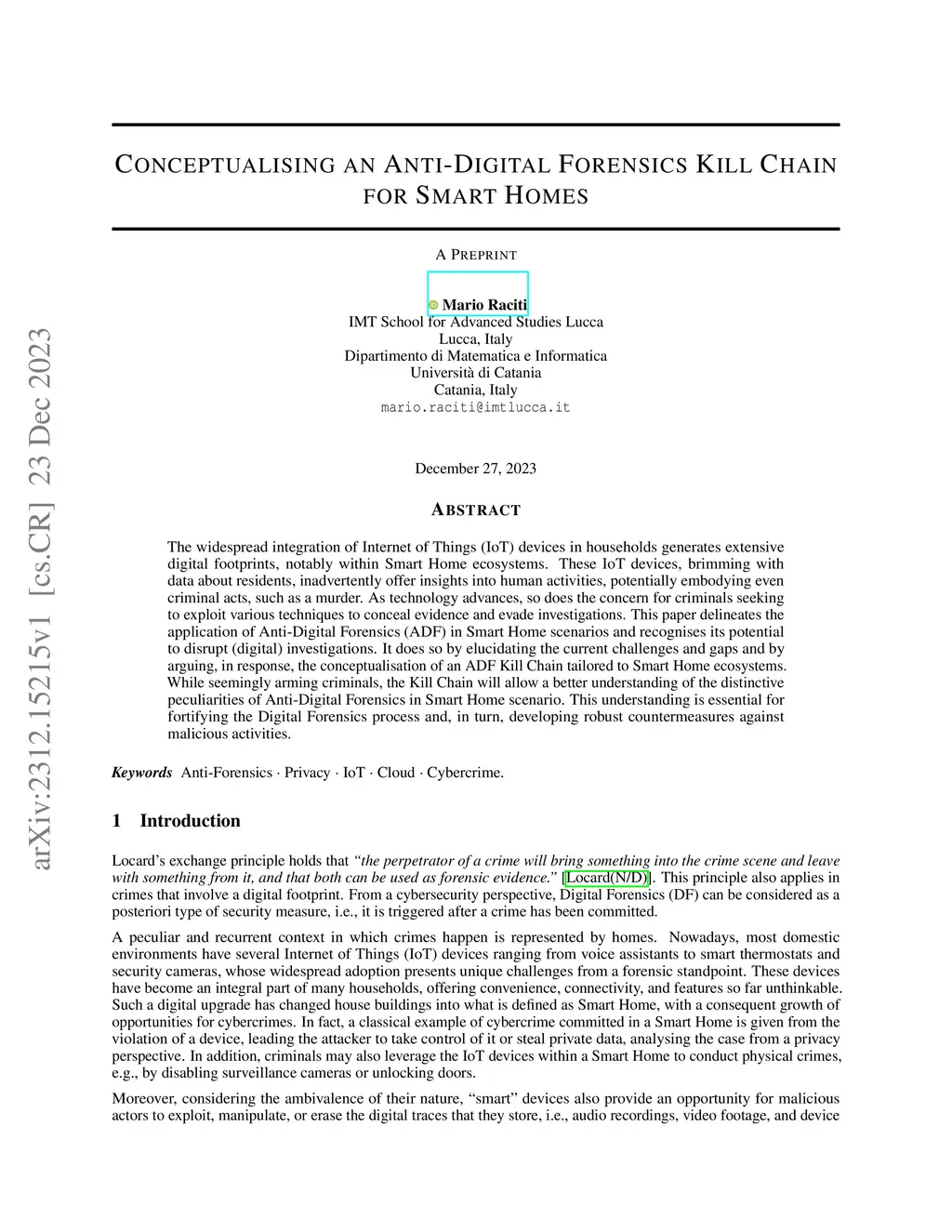 Conceptualising an Anti-Digital Forensics Kill Chain for Smart Homes