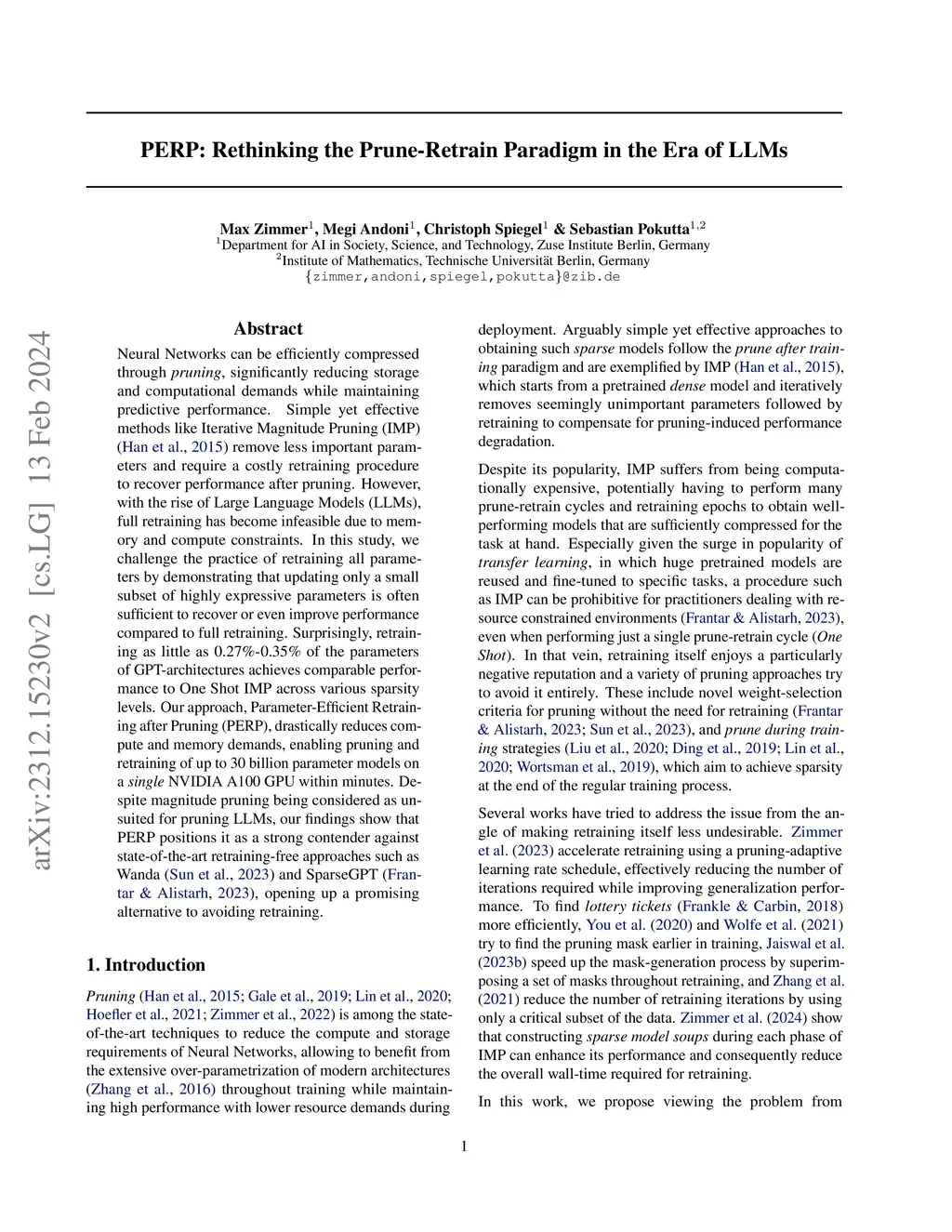 PERP: Rethinking the Prune-Retrain Paradigm in the Era of LLMs