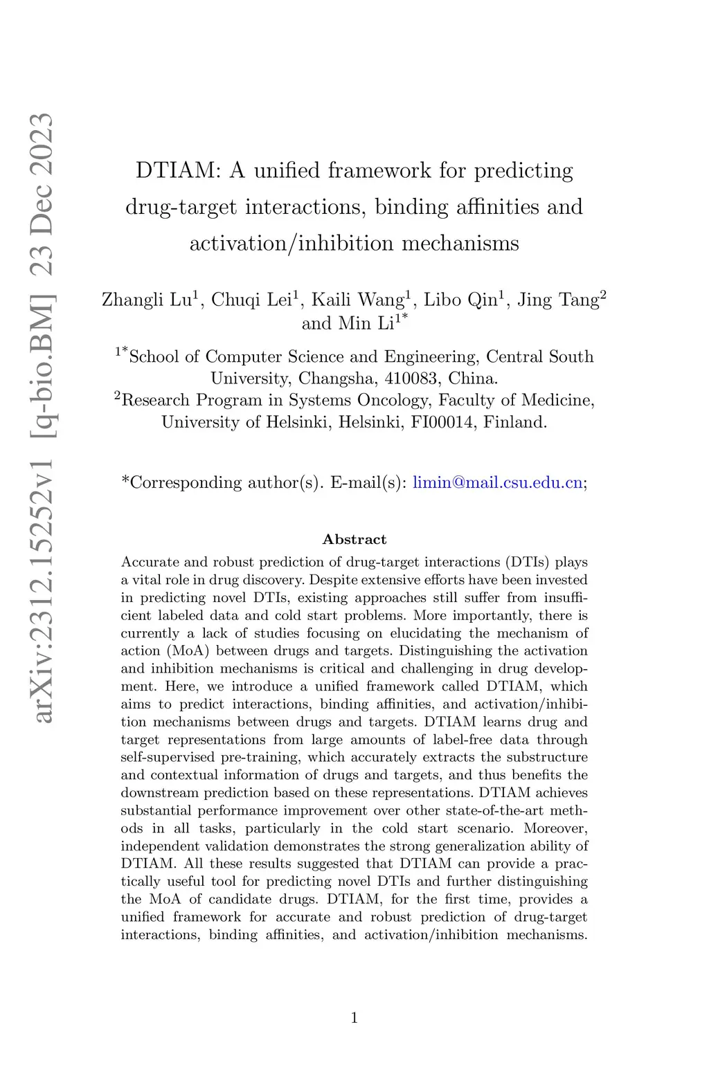 DTIAM: A unified framework for predicting drug-target interactions,
