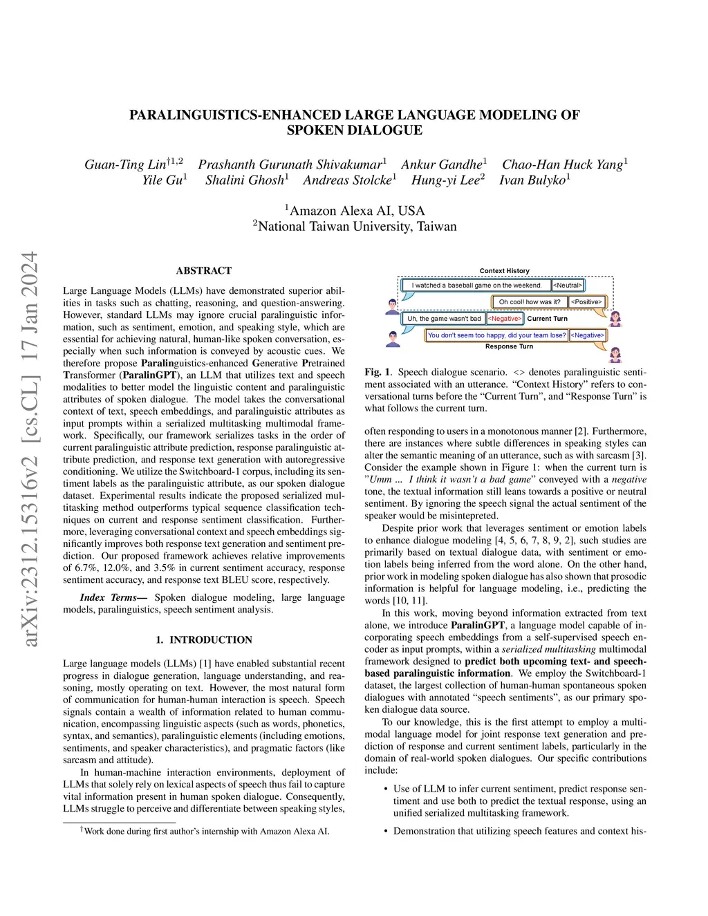 Paralinguistics-Enhanced Large Language Modeling of Spoken Dialogue