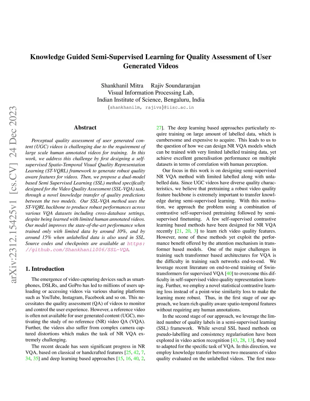 Knowledge Guided Semi-Supervised Learning for Quality Assessment of User