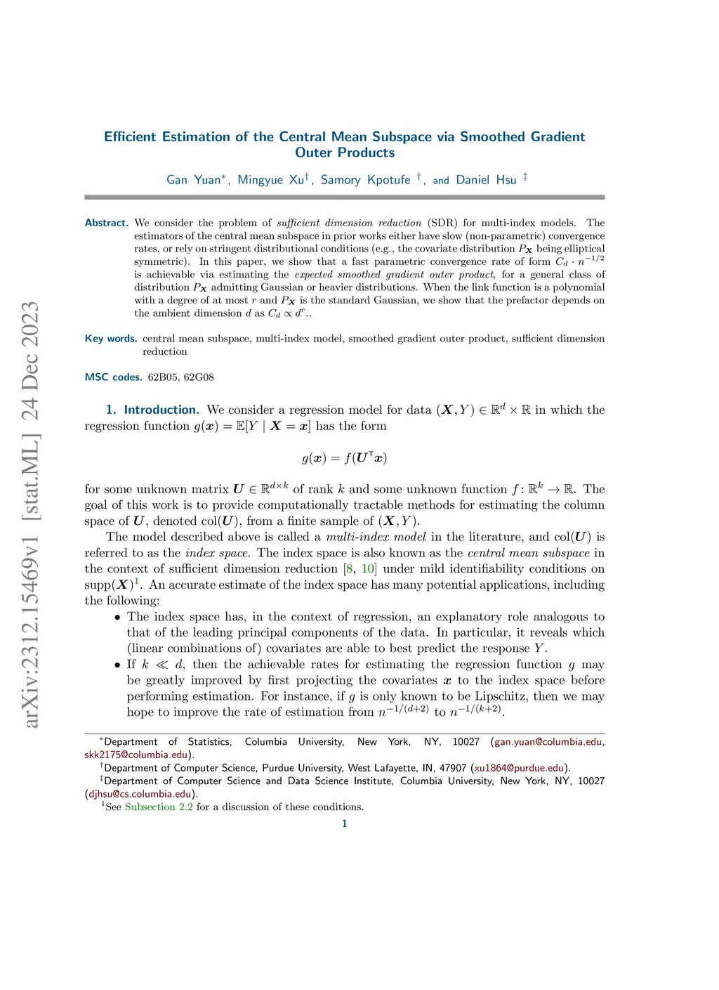 We consider the problem of sufficient dimension reduction (SDR) for multi-index models. The estimators of the central mean subspace in prior works either have slow (non-parametric) convergence rates, or rely on stringent distributional conditions (e.g., the covariate distribution being elliptical symmetric). In this paper, we show that a fast parametric convergence rate of form is achievable via estimating the \emph{expected smoothed gradient outer product}, for a general class of distribution admitting Gaussian or heavier distributions. When the link function is a polynomial with a degree of at most and is the standard Gaussian, we show that the prefactor depends on the ambient dimension as .