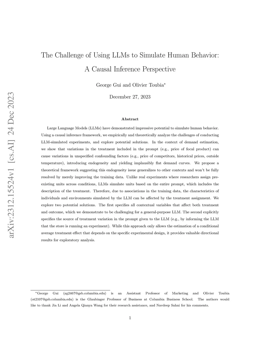 The Challenge of Using LLMs to Simulate Human Behavior: A Causal Inference Perspective